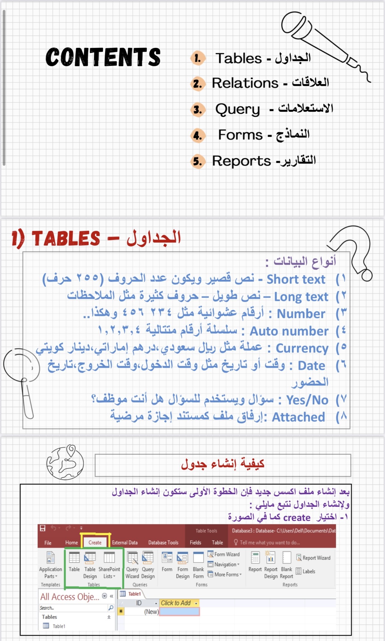 حيث احتوت محاور الورشة على ماهي وظيفة برنامج ACCESS، واستعراض لأهم المواضيع في هذا البرنامج كالجداول والعلاقات والاستعلامات والنماذج والتقارير، كذلك توضيح لأنواع البيانات وكيفية انشاء جدول وانشاء نموذج من جدول أو استعلام، وكان هناك تفاعل واضح من المنسوبات سواء مشرفات أو اداريات، وأشادوا بأهمية هذا التعاون بين جامعة الامير سطام بن عبد العزيز وتعليم الخرج العام، أكدوا على تكرار مثل هذا التعاون،