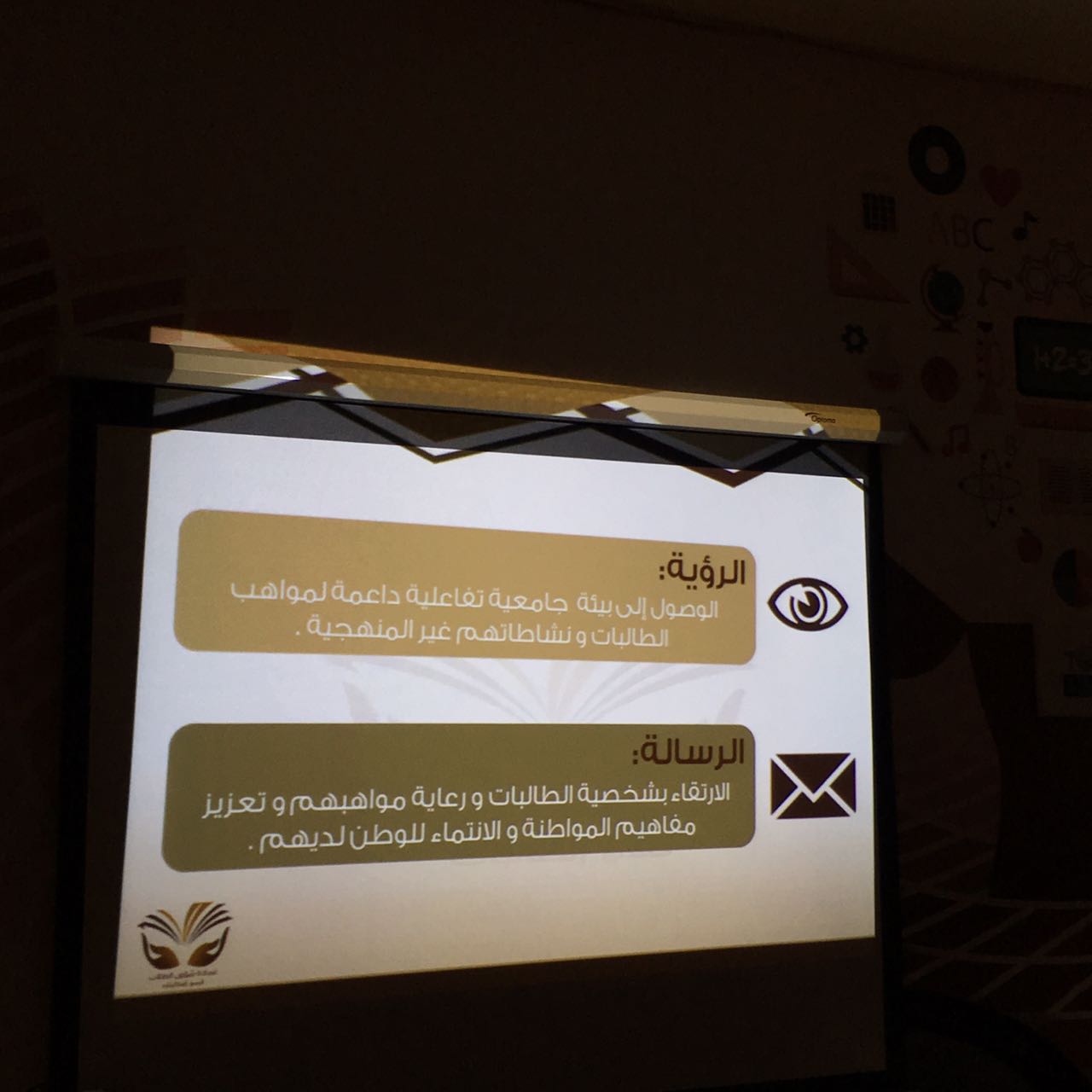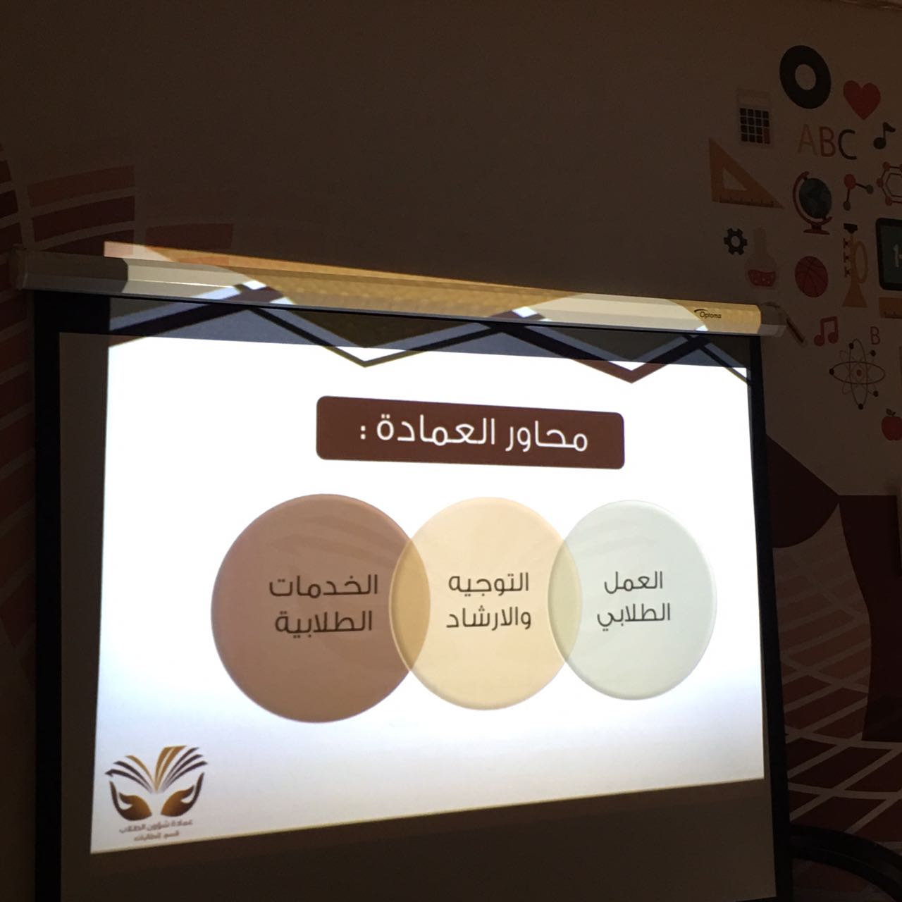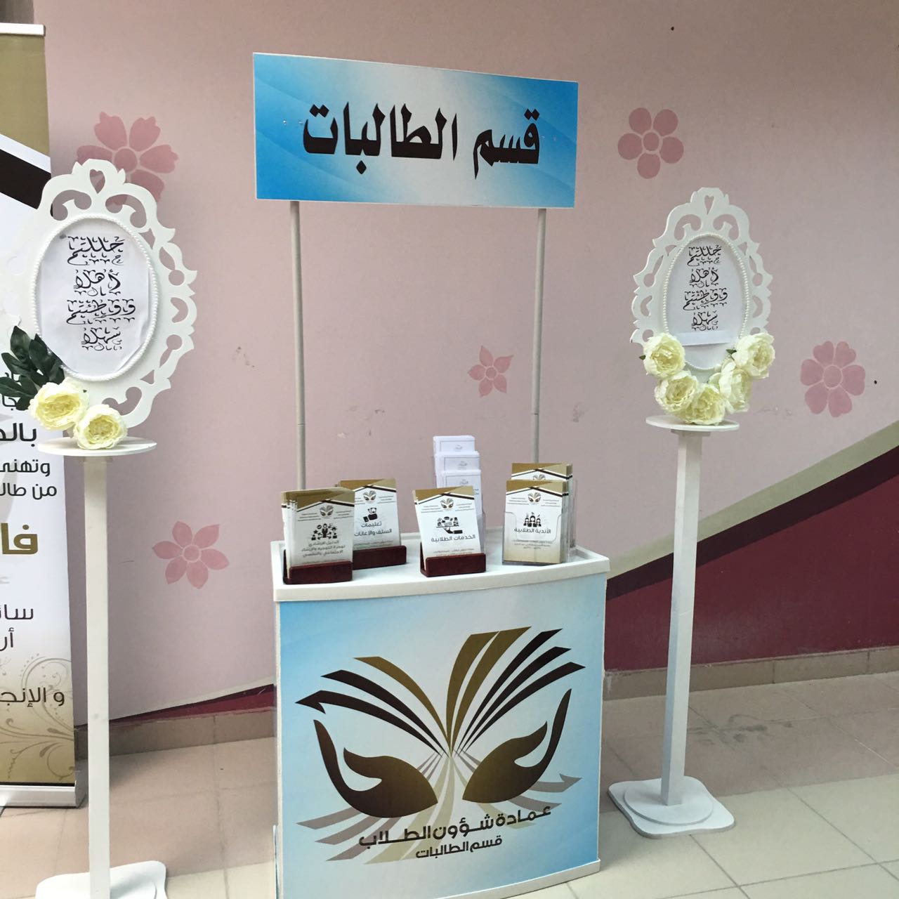 وتمثلت مشاركة قسم الطالبات بتقديم عرض PowerPoint تضمن التعريف بالعمادة، وأقسامها ووحداتها، والخدمات متعددة المسارات التي تقدمها لطلاب الجامعة وطالباتها، يصاحبه شرح مفصل من مساعدة وكيلة عمادة شؤون الطلاب الأستاذة أميرة الجيزاني . كما تضمّن البرنامج تخصيص ركن يشمل النشرات التعريفية والمطويات التي وزّعت على الحضور، بعد أن أرسلت هذه النشرات والمطويات إلكترونيًّا إلى كليات الفروع لتوزيعها على الطالبات في مثل هذه اللقاءات.