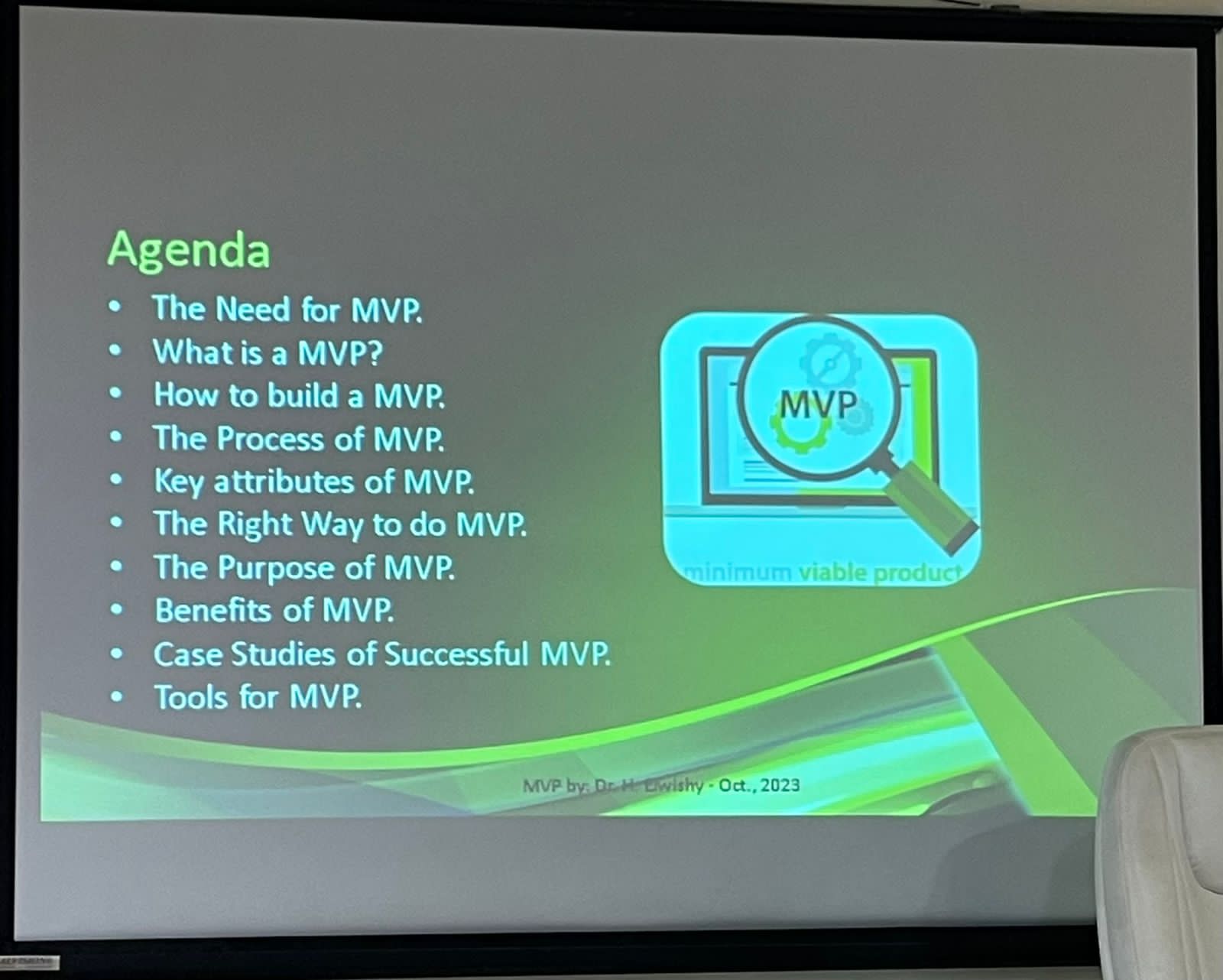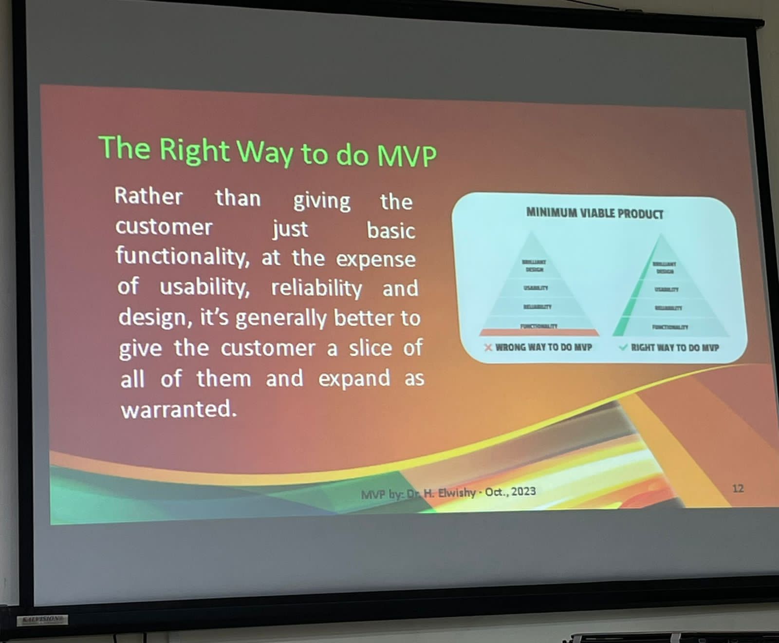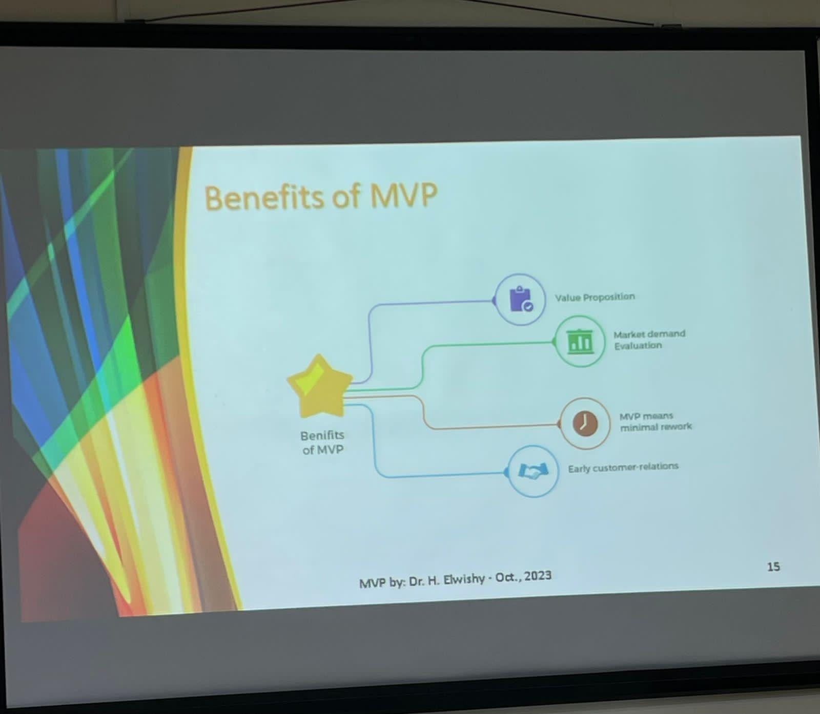 وتحت قيادة سعادة المدير التنفيذي للكلية التطبيقية بحوطة بني تميم د. بيان إبراهيم السيف نظم قسم التدريب و التأهيل دورة تدريبية بعنوان "إعداد النماذج الأولية المبسطة Minimum Viable Product (MVP) إعداد وتقديم المدرب المعتمد د. هبة الله أحمد الويشي أستاذ مساعد نظم المعلومات وذلك يوم الأحد 16/03/1445هـ الموافق 01/10/2023م بالمقر النسائي لجمعية الدعوة والإرشاد بحوطة بني تميم بحضور طالبات التدريب التطبيقي.