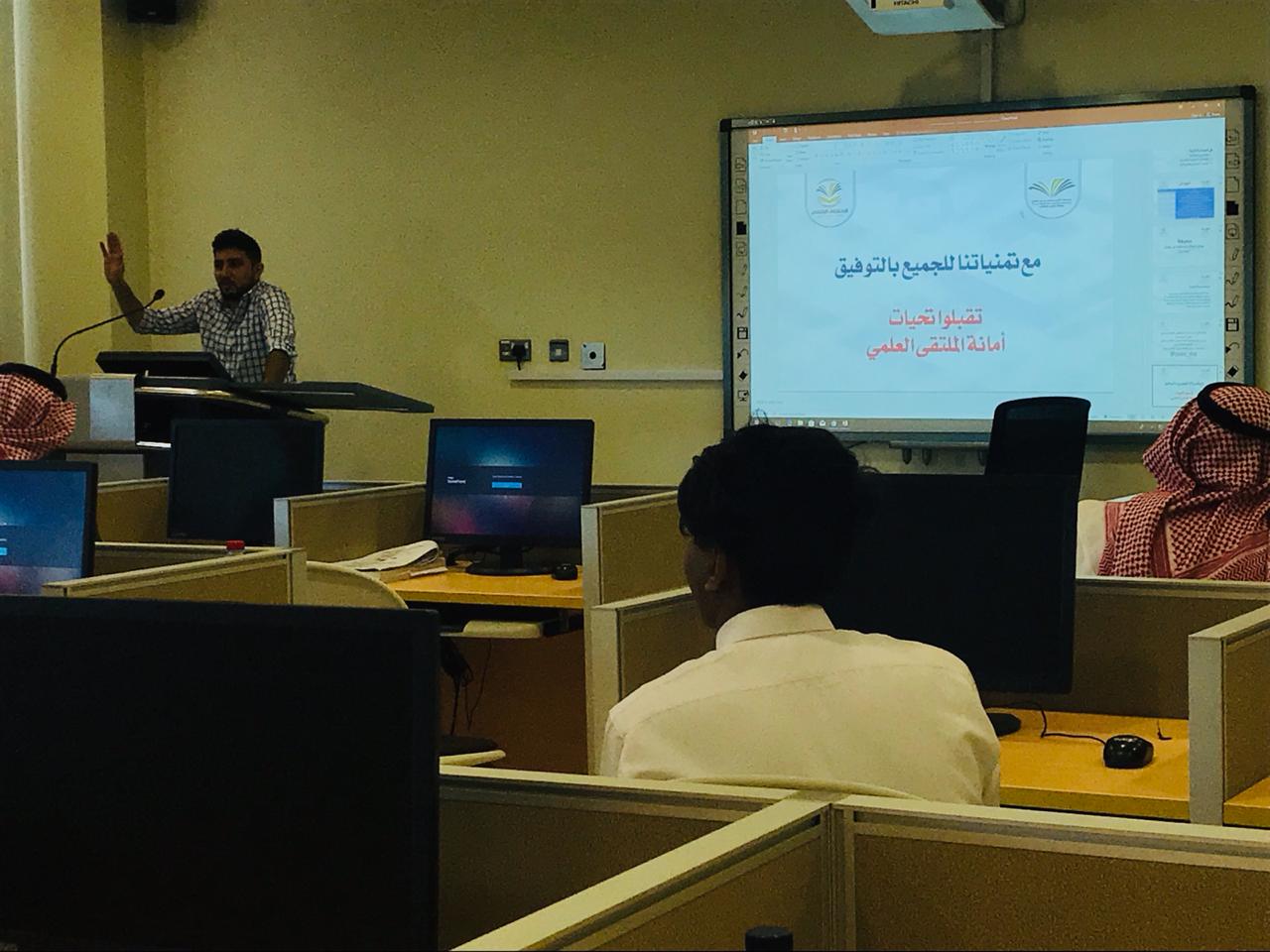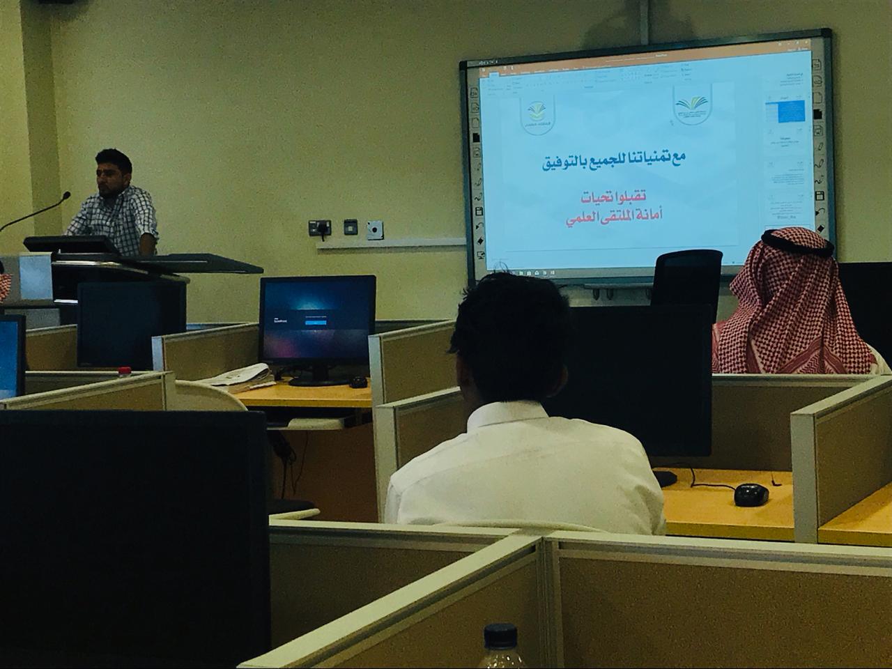 وقد استهدف اللقاء تعريف طلاب القسم بالملتقي العلمي الثالث وأهدافه ورؤيته ورسالته ومحاوره المختلفة فيما يرتبط بالبحث العلمي ، الأفكار الريادية ، المبادرات المجتمعية أو الأعمال التطوعية أو الابتكارات والاختراعات ، كما أشار سعادته إلى الدعم الذي تقدمه الكلية والجامعة للطلاب في هذا الإطار, كما أكد أيضاً على أن القسم يقدم كل الدعم لطلابه داعياً الجميع إلى ضرورة المشاركة والتفاعل .
