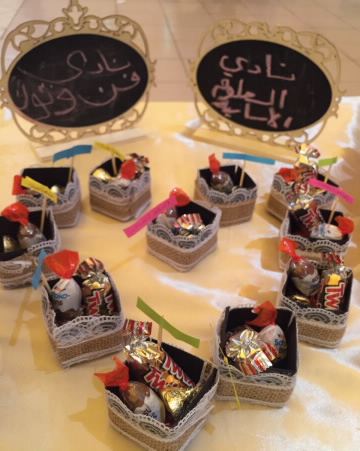 كما تضمن الركن التعريفي توزيع بروشوراتٍ ومطوياتٍ على الحضور تحتوي على معلوماتٍ وتوزيعات من صنع الطالبات والتي على إثرها لاقت إعجاب واستحسان الحضور.