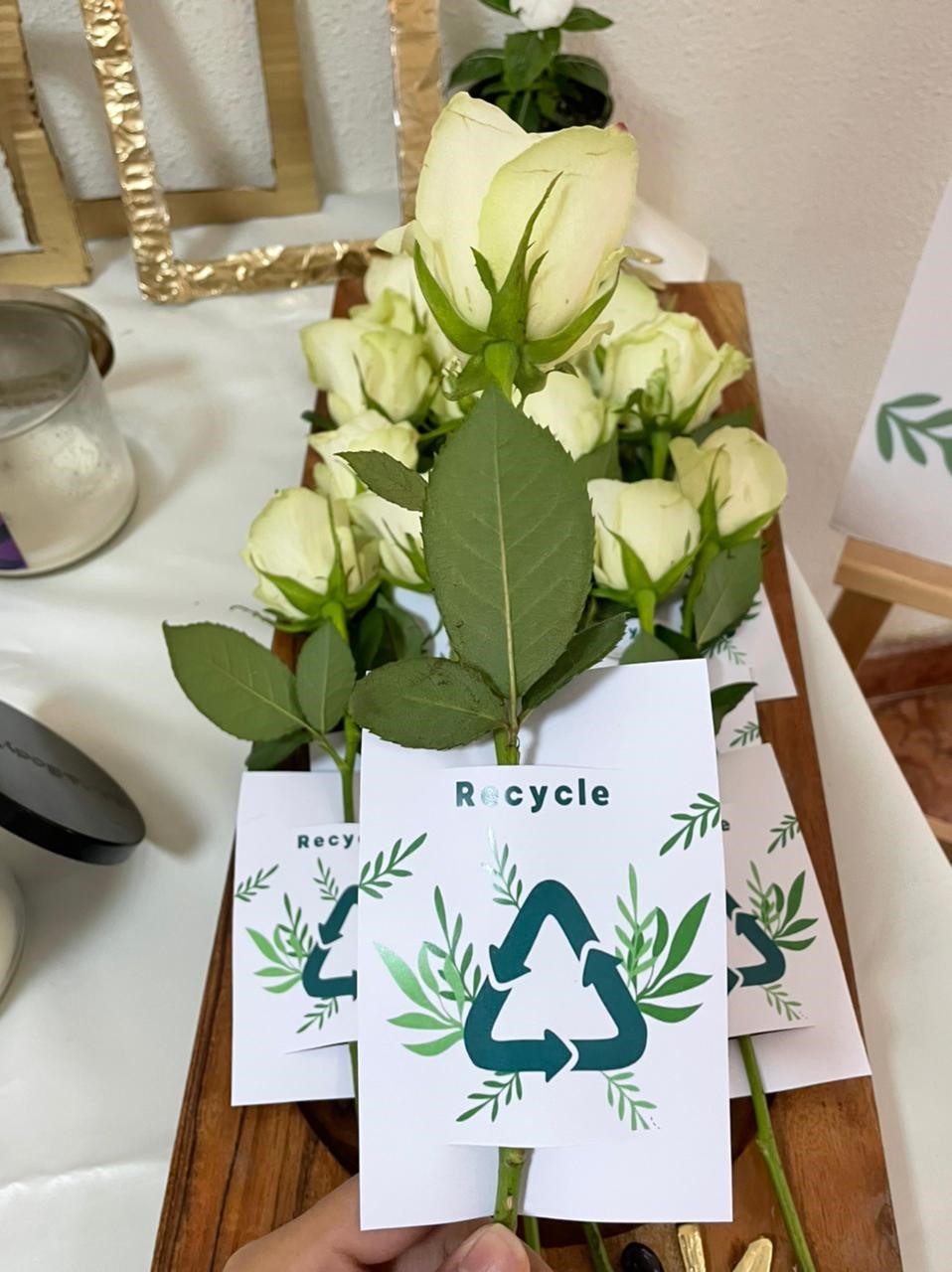 وكان من أهداف الركن توعية الطالبات بأهمية الحفاظ على البيئة حيث شاركن الطالبات بكلمات وشعارات إيجابية حول إعادة التدوير، كما تم توزيع ملصقات وأشغال يدوية حول إعادة التدوير.