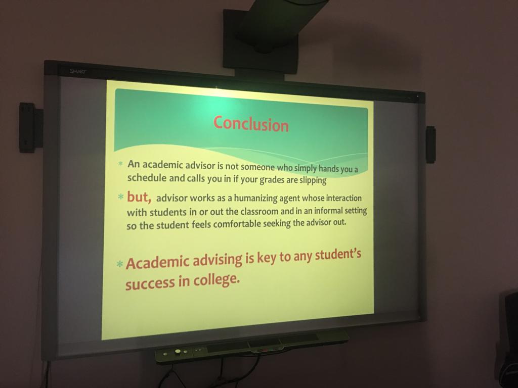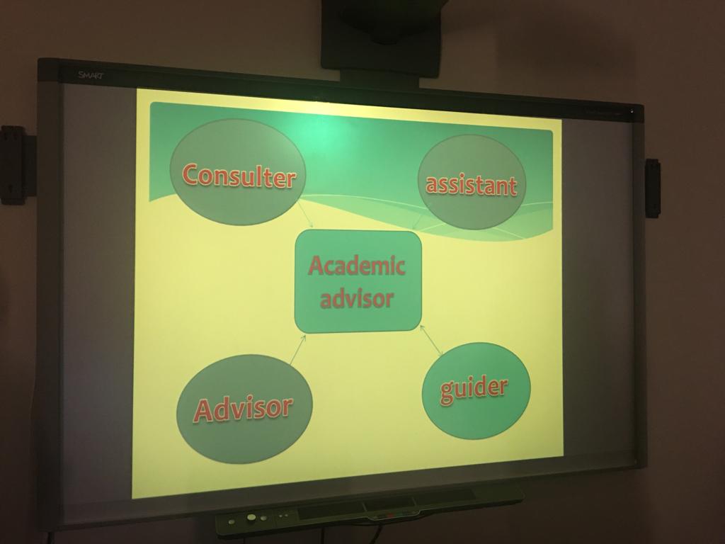 نظمت وحدة الإرشاد الأكاديمي بعمادة السنة التحضيرية /شطر الطالبات يوم الخميس الموافق 1441/1/27هـ ورشة عمل بعنوان الإرشاد الأكاديمي(ROLE AND RESPONSBILITY OF ACADIMIC ADVICOR ) قدمتها أ.موده هارون وقد تناولت الورشة عدة محاور من أهمها دور المرشدة الأكاديمية في تطوير الأداء الأكاديمي ومفهوم الإرشاد وآلية عمل المرشدة الأكاديمية والنماذج اللازمة لها،والمرجعيات للاحتياجات المختلفة في الإرشاد ،وبعض المفاهيم المهمة للمرشدة الأكاديمية لإيصالها للطالبات ، كما وضحت مواصفات المرشدة الناجحة ودور أعضاء الهيئة التدريسية في مساعدة المرشدة لأداء مهامها على أكمل وجه. وكان هناك الكثير من الأسئلة والاستفسارات من قبل العضوات مما أدى إلى إثراء الدورة وزيادة فعاليتها وفائدتها. واختتم اللقاء بكلمة من أ. موده شكرت فيها جميع الحاضرات وأكدت على أعضاء الهيئة التدريسية بضرورة الدقة في العمل وإنهاء الأعمال المتعلقة بالإرشاد الأكاديمي في الوقت المحدد .