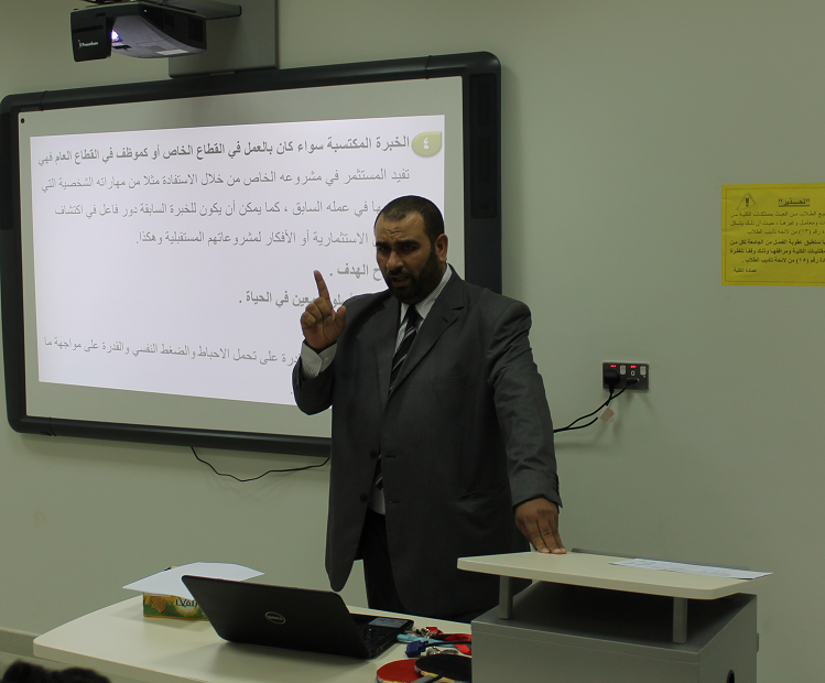 نظمت لجنة الأنشطة الطلابية محاضرة تثقيفية بعنوان: " ريادة الأعمال في المملكة العربية السعودية بين الواقع والمأمول "برعاية الدكتور/ ناصر بن سعد القحطاني، عميد الكلية والدكتور/علي الزهراني ، وكيل الكلية للشؤون التعليمية والأكاديمية ودير الإدارة محمد عبد المطلوب حمدان ، قدم المحاضرة الدكتور طارق توفيق الخطيب الأستاذ المساعد بقسم التسويق بالكلية؛ حيث تناولت المحاضرة تعريف وتطور مفهوم ريادة الأعمال مع سرد لفوائد مشاريع ريادة الأعمال وأثرها على الفرد والمجتمع من منظور اقتصادي حديث، وبيان المعوقات التي تواجه مشاريع ريادة الأعمال في المملكة العربية السعودية مرورًا بمخاوف الشباب من مشاريع ريادة الأعمال . ثم بين الدكتور الخطيب علاقة ريادة الأعمال بالسوق السعودي وواقع مشاريع ريادة الأعمال في الجامعات السعودية ، مقدما توضيح لآلية تفعيل وتطوير مشاريع ريادة الأعمال في المملكة وصفات ومهارات رائد الأعمال الناجح . وقد اختتم المحاضرة بنصائح مهمة لرواد أعمال المستقبل وأمثلة لبعض مشاريع ريادة الأعمال، مشجعًا الحضور بذكر أمثلة لرواد أعمال ناجحين في حياتنا المعاصرة . كما تم بنهاية المحاضرة السحب على جوائز تشجيعية للطلاب الحضور .