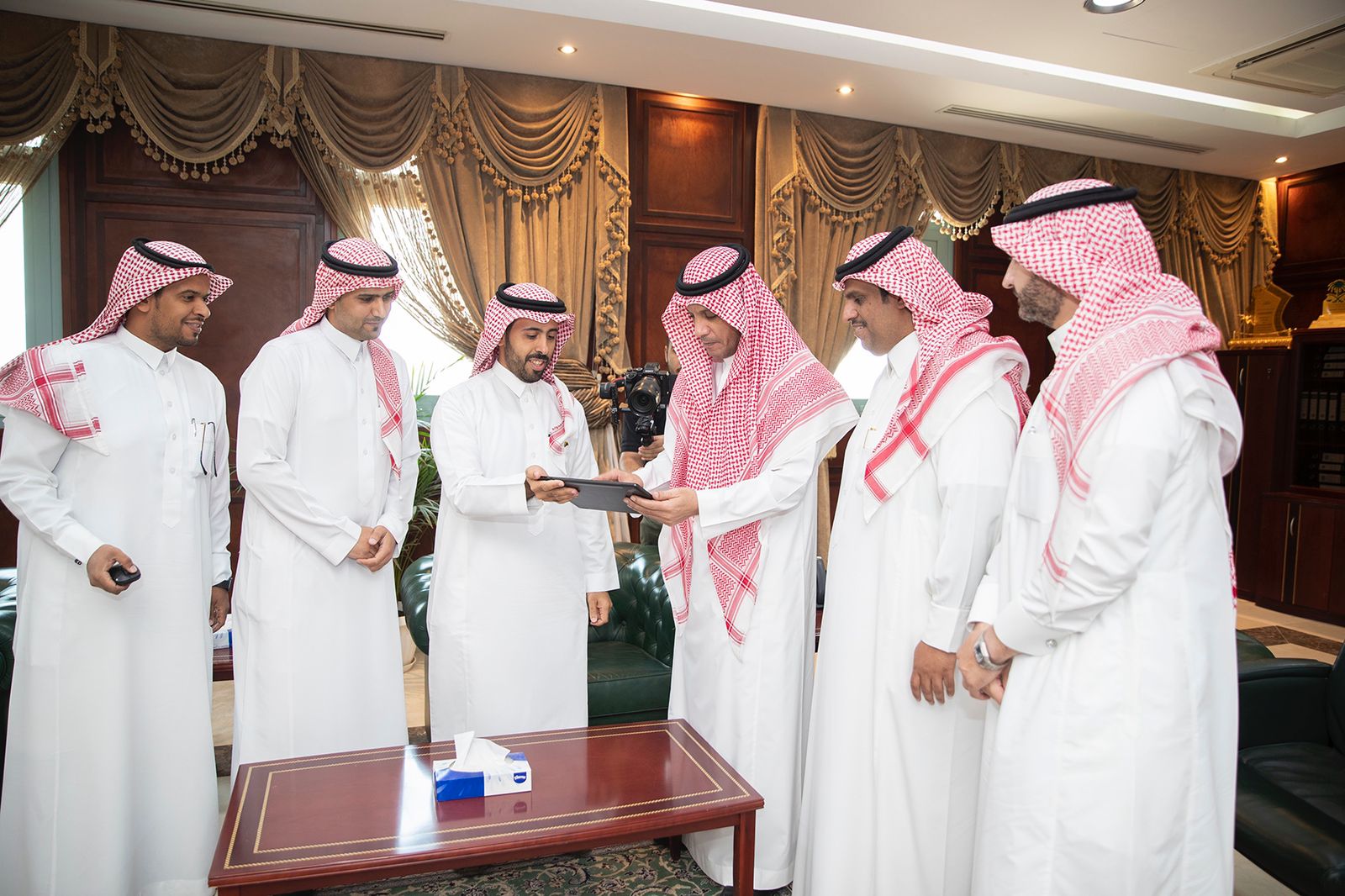 بحضور أصحاب السعادة وكيل الجامعة للشؤون التعليمية والأكاديمية الأستاذ الدكتور مشاري بن عياد العصيمي و وكيل الجامعة للدراسات العليا والبحث العلمي الدكتور عبدالله بن نضال عداس، وعميد تقنية المعلومات والتعليم عن بُعد الدكتور عبدالعزيز بن عبدالله الداعج ووكيل التعلم الإلكتروني بعمادة تقنية المعلومات والتعليم عن بعد الدكتور يوسف الحربي وفريق العمل المشارك في عمل المنصة الرقمية (وجّهني)، وذلك تزامناً مع تطبيق نظام الفصول الثلاثة، وتطبيقاً لتوصيات وزارة التعليم نحو إنشاء مراكز للإرشاد الأكاديمي الرقمي بالجامعات.