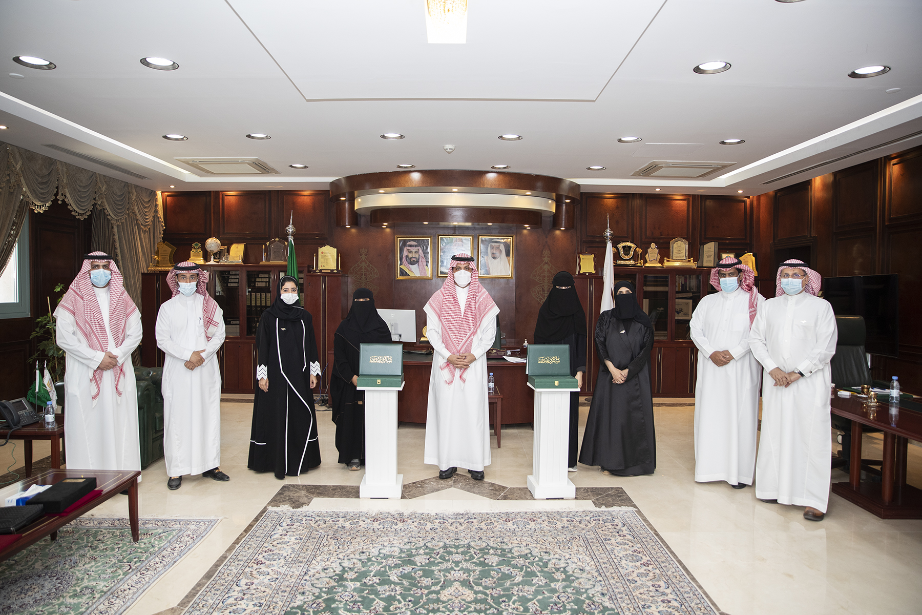 طلاب وطالبات الجامعة الحاصلين على المراكز الأولى في المشاركات والمسابقات العلمية وذلك بحضور وكلاء الجامعة .