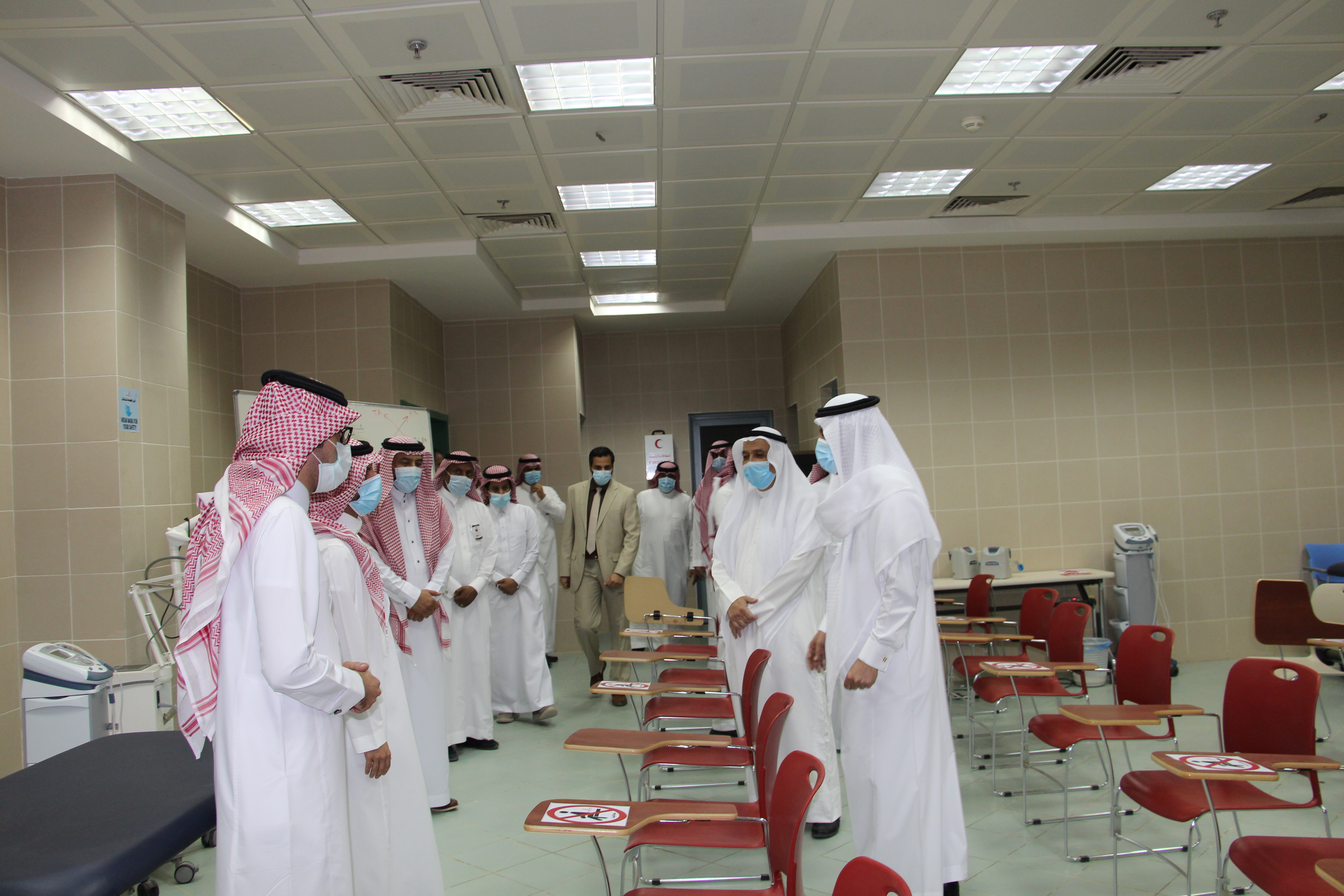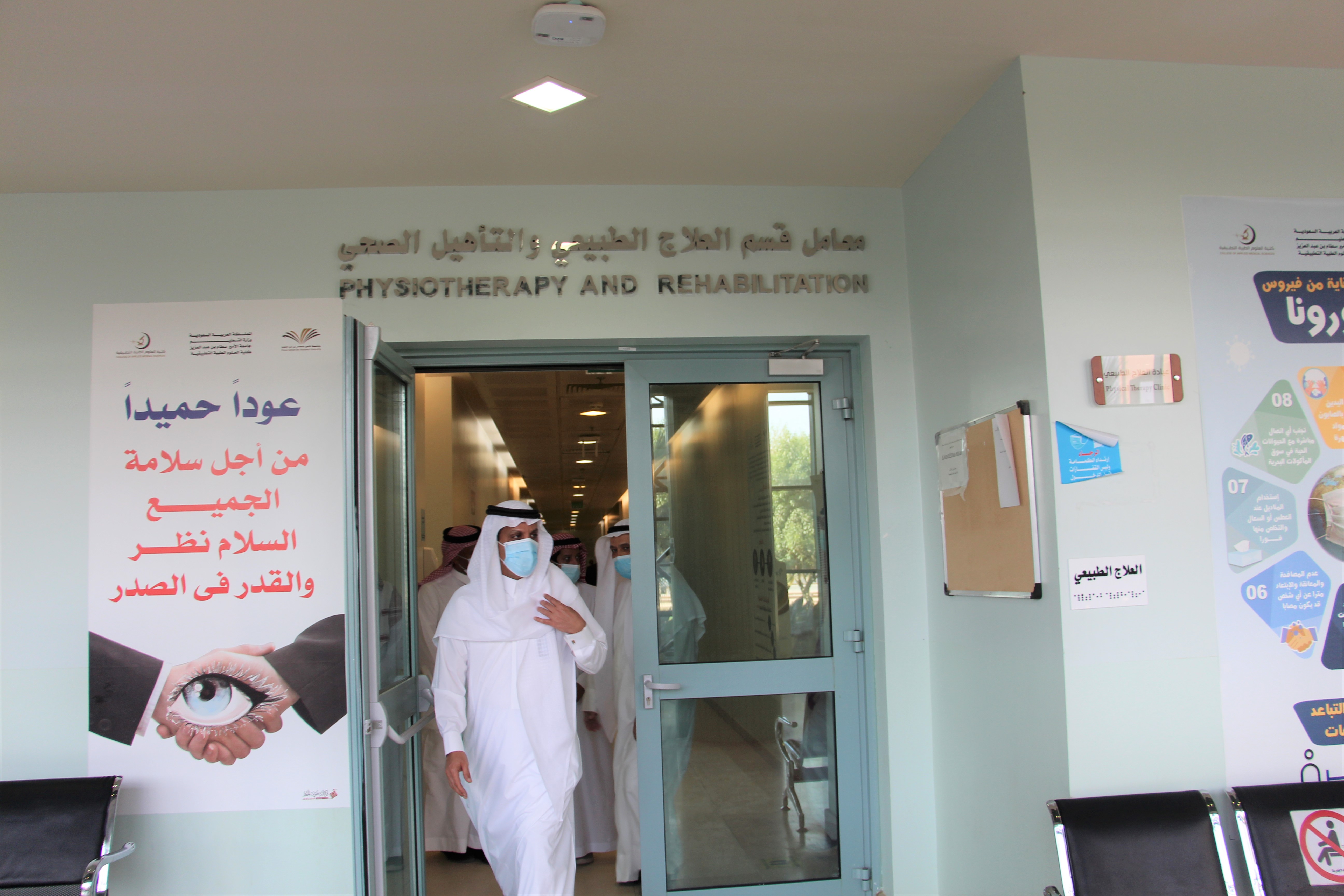 استقبلت كلية العلوم الطبية التطبيقية سعادة رئيس الجامعة أ.د/عبد الرحمن بن هلال الطلحي ويرافقه سعادة مستشار رئيس الجامعة والمشرف على العلاقات العامة بالجامعة د/عيسى بن خلف الدوسري، وكان في استقبالهم سعادة عميد الكلية أ.د/ماهر بن مفضي العنزي وسعادة وكيل الكلية للشؤون التعليمية والأكاديمية د/سعود بن معاشي الرويلي وسعادة وكيل الكلية للدراسات العليا والتطوير والجودة د/سعود بن فهيد السبيعي وسعادة مدير الإدارة أ/ماجد بن فويز الدوسري وعدد من رؤساء الأقسام وأعضاء التدريس والموظفين ، حيث تفقد الدكتور الطلحي استعدادات الجامعة للعودة الأمنة، وجاهزية القاعات والمعامل الدراسية، ومدى جاهزيتها لاستقبال الطلاب للعام الدراسي الجديد 1443هـ، ومدى تطبيق الأليات والإجراءات الاحترازية المتبعة للحد من أنتشار فايروس كورونا covid 19،وقد تجول رئيس الجامعة في أروقة المبنى ،ومن خلال الجولة تمت مناقشة بعض المعوقات والاحتياجات وسبل حلها وتذليلها ،وذلك بالتعاون مع كافة إدارات الجامعة وذات العلاقة ،وبعد الجولة أكد سعادته أن هذه الجولات التفقدية تندرج تحت حرص الجامعة على توفير بيئة تعليمية آمنة ومثالية لأبنائنا الطلاب والطالبات والحرص على سلامتهم أولاً وحصولهم على تحصيل علمي ممتاز في هذه الظروف .