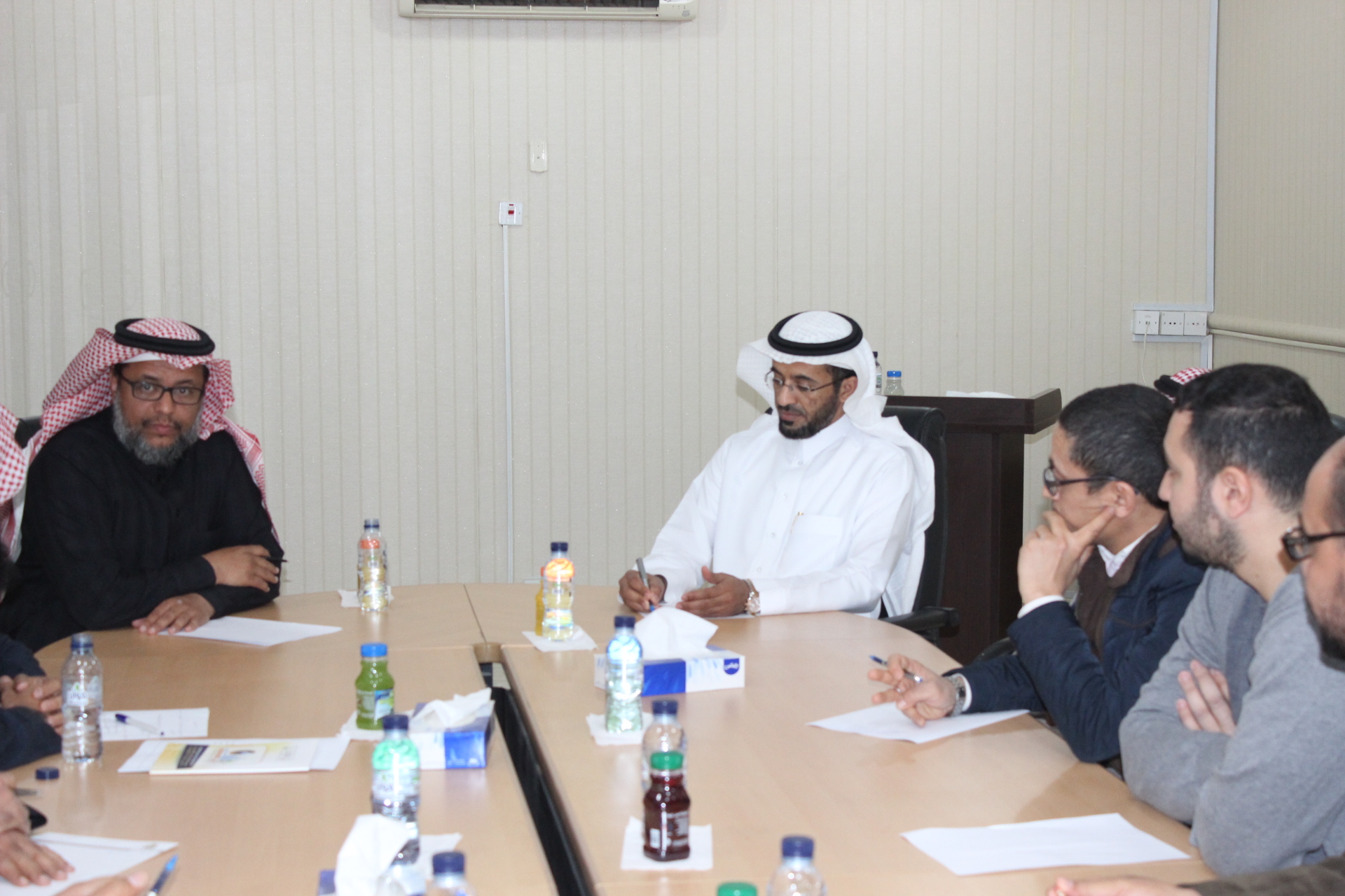 وبعد ذلك تم عقد لقاء مع مجموعة من أعضاء هيئة التدريس دار حولها نقاش مستفيض حول سبل التعاون بين كليات المجتمع وتبادل التجارب الناجحة من خلال إعداد قاعدة بيانات للبرامج الأكاديمية المطروحة وللشراكات المجتمعية مع جهات التوظيف. كما تناول النقاش آليات تحفيز الطلاب للالتحاق بكليات المجتمع، وتأسيس ثقافة التميز والإبداع لديهم ، من خلال إكسابهم للمهارات العملية والممارسات التطبيقية التي يحتاجها سوق العمل. وإثر هذه المداخلات، أكد كلٌ من الدكتور / القميزي والدكتور / النمي على المزيد من المبادرات البناءة لكليات المجتمع لا سيما في مجال الخدمات الاستشارية التي يمكن تقديمها لكافة شرائح المجتمع ومؤسساته الحكومية والخاصة.