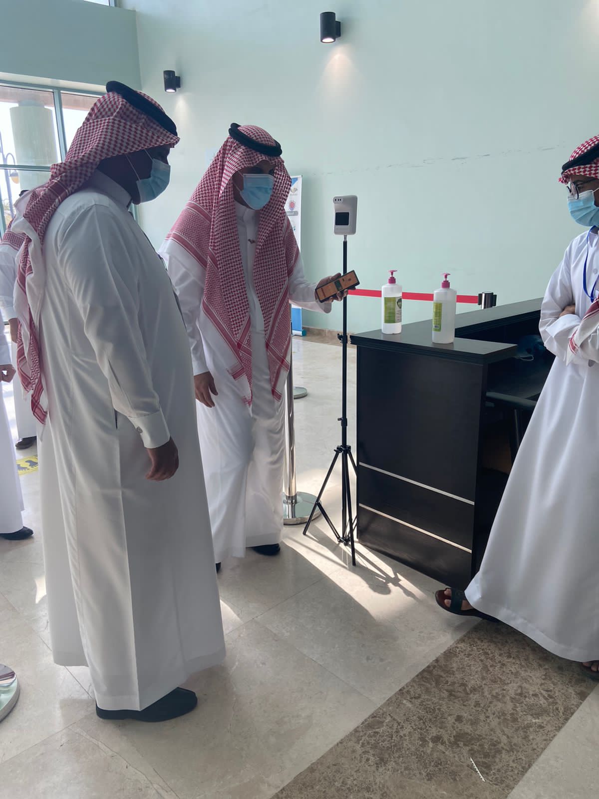 وكان في استقبالهم سعادة عميد عمادة السنة التحضيرية والفرق العاملة على تطبيق إجراءات الجامعة للعودة الحضورية الآمنة.