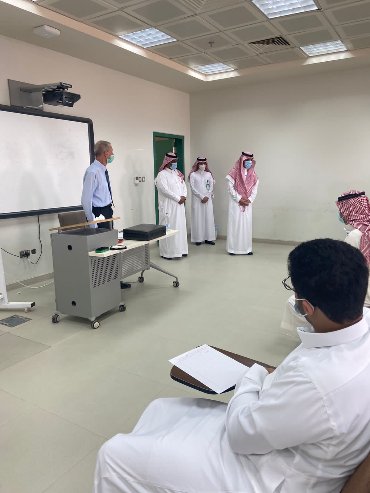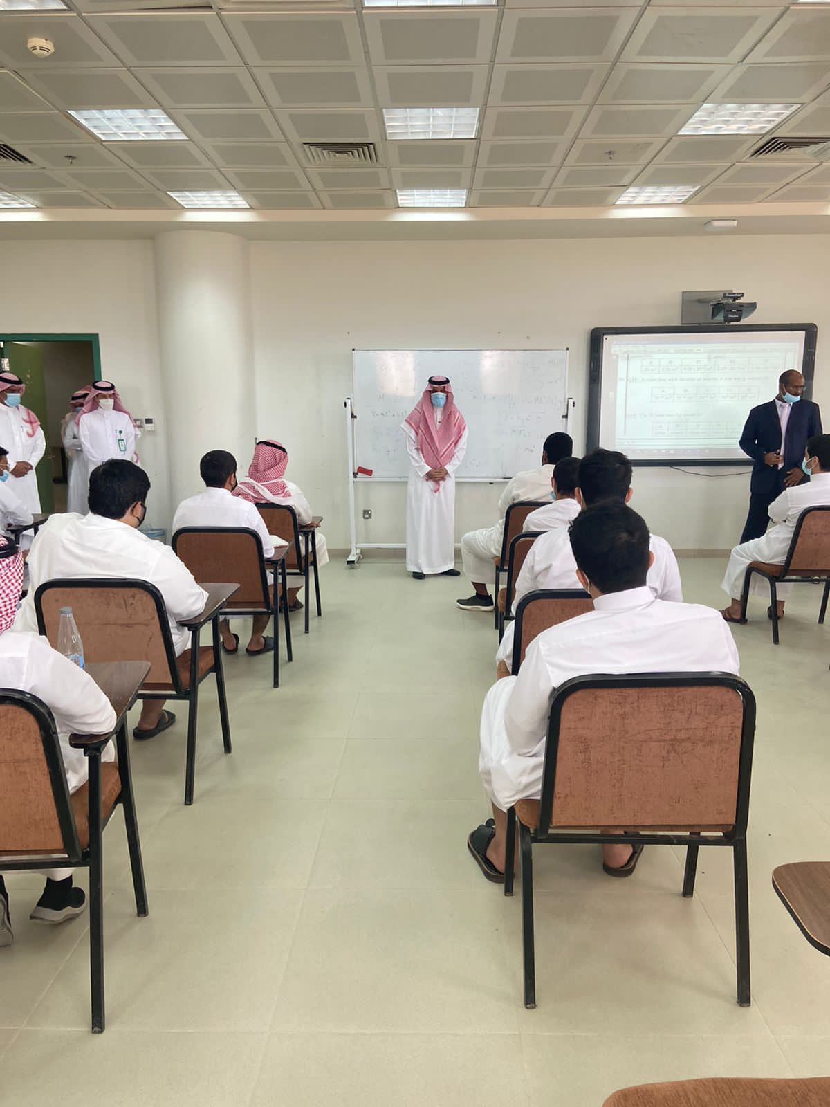 جرى خلال الزيارة اطلاع سعادته ومرافقوه على القاعات الدراسية ، وجاهزيتها والاطمئنان على التزام العمادة بتطبيق الإجراءات الاحترازية المتبعة في الجامعة ، والمستمدة من تعليمات وزارة التعليم والأدلة الصادرة بهذا الخصوص.