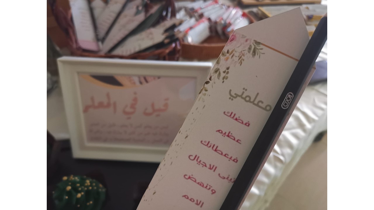 نهنئ من القلب صانعي الأجيال ورافعي منار العلم لمن أشعلوا قناديل العلم والمعرفة للذين غرسوا بذور نحصد ثمارها كل يوم من تقدم ورفعه، وتقديرا منا وعرفانا لفضلهم الكبير وأحياءً ليوم المعلم، نظمت وحدة العمل التطوعي - بعمادة السنة التحضيرية – قسم الطالبات وبالتعاون مع نادي اللغة الإنجليزية بالعمادة فعالية بعنوان " شكراً"، وذلك يوم الأربعاء الموافق 9-3-1444هـ بحضور منسوبات وطالبات العمادة. حيث استهلت الفعالية بآيات من الذكر الحكيم، عقبها عرضي تقديم باللغة العربية واللغة الانجليزية من قبل طالبات العمل التطوعي وطالبات النادي تضمن سرد لتاريخ يوم المعلم واستعراض لدورهم المهم والكبير والمؤثر في صقل شخصيات الطلاب وتنميتها وانعكاسها على المجتمع وما يتوجب تقديمه من كامل الاحترام والتقدير لمجهوداتهم. واختتم اللقاء بإلقاء أبيات شعرية، كما قامت طالبات نادي اللغة الانجليزية وطالبات وحدة العمل التطوعي بتوزيع ورود وعبارات شكر وثناء لمنسوبات العمادة. وقد لقيت الفعالية رضا واستحسان الحضور من منسوبات وطالبات العمادة.