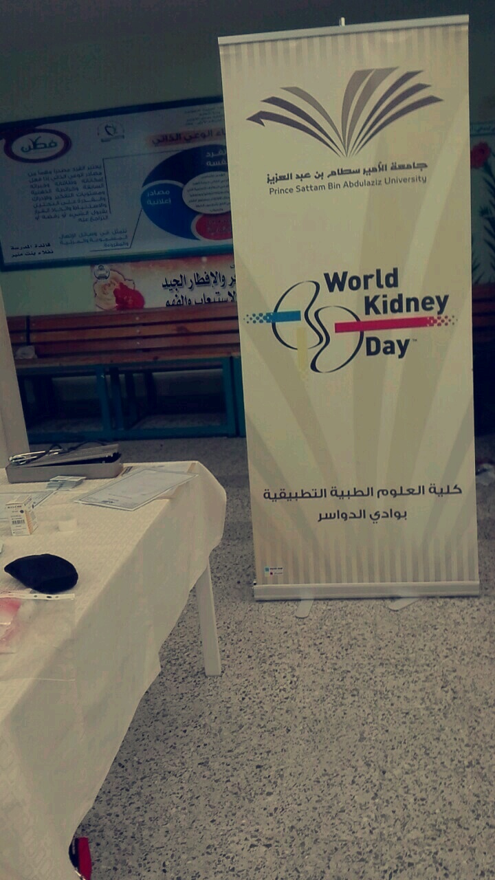 تحت إشراف الدكتورة/ ميرفت محمد لبيب الكاشف مشرفة كلية العلوم الطبية التطبيقية نظم المجلس الاستشاري للطالبات بقيادة أ/ هيفاء عابدين مشرفة المجلس الاستشاري وبمشاركة طالبات الكلية يوم صحي بعنوان (صحتك في كليتك) في اطار الاحتفال باليوم العالمي للكلى 2017بثانوية الشرافاء الأولى وقد تضمن اليوم الصحي محاضرة بعنوان (كيف تحافظ على سلامة كليتك) و التي القتها أ. هيفاء عابدين عثمان أستاذة أمراض الدم والمناعة الدموية بقسم علوم المختبرات الطبية كما اشتمل البرنامج الصحي على بعض الفحوصات و التحاليل الطبية التي لها علاقة بأمراض الكلى هذا بالإضافة إلى فقرة ثقافية ترفيهية متعلقة بالكلى وأمراضها لنشيط الجانب الذهني و الإدراكي لدى طالبات و منسوبات المدرسة وترسيخ المعلومات المتعلقة بكيفية الحفاظ على سلامة الكلى