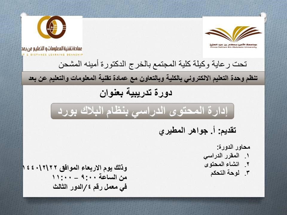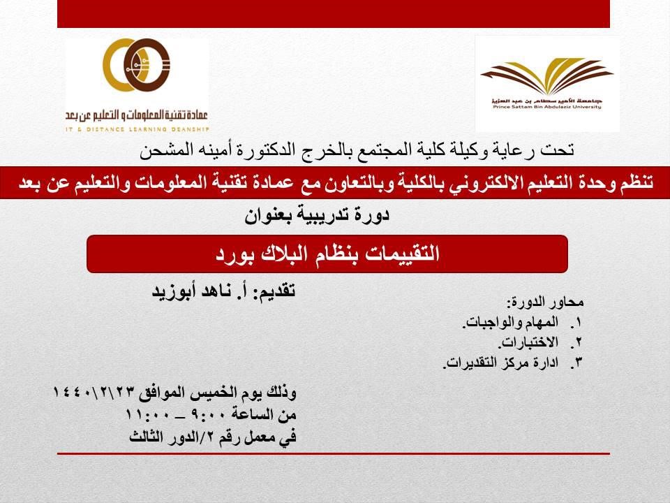 وجاءت هذه السلسلة من الدورات لرفع استخدام أدوات البلاك بورد وتفعيلها بالكلية.