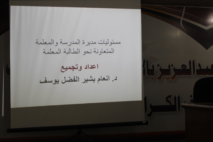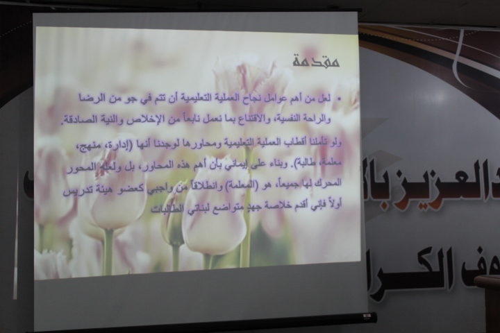 اختتمت وحدة التدريب الميداني(التدريب الطلابي) بكليات الأفلاج(قسم الطالبات) أسبوع تهيئة الطالبات للتربية الميدانية، وقد تضمن الأسبوع سلسلة من المحاضرات لتهيئة طالبات التربية الميدانية لقسم الدراسات الإسلامية من تقديم د. إنعام بشير الفضل وأ. سعاد حسن ود.عائدة السلمان ود.فاطمة كمال ود.نهاد عبدالمطلب.
