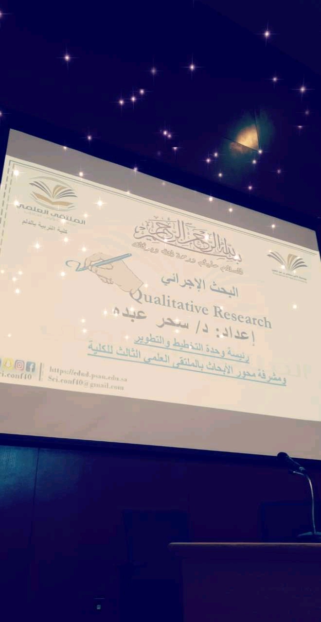 حيث بدأ بورشة (التميز في اختيار مشروعك البحثي) للدكتورة سحر عبدالرحيم من الساعة ٨-٩