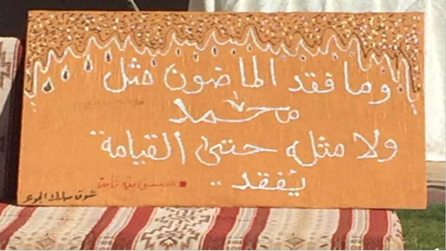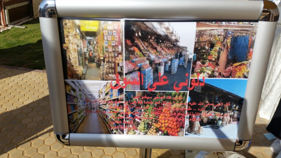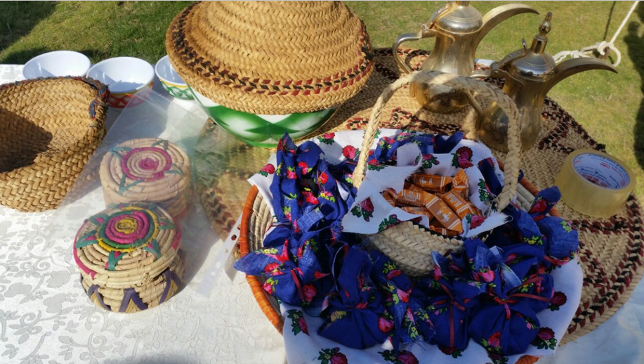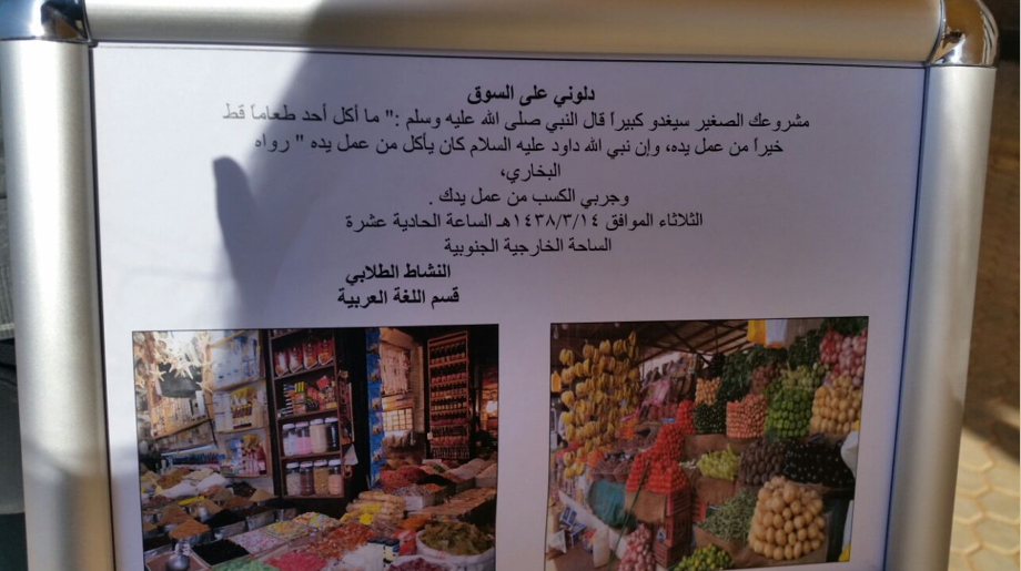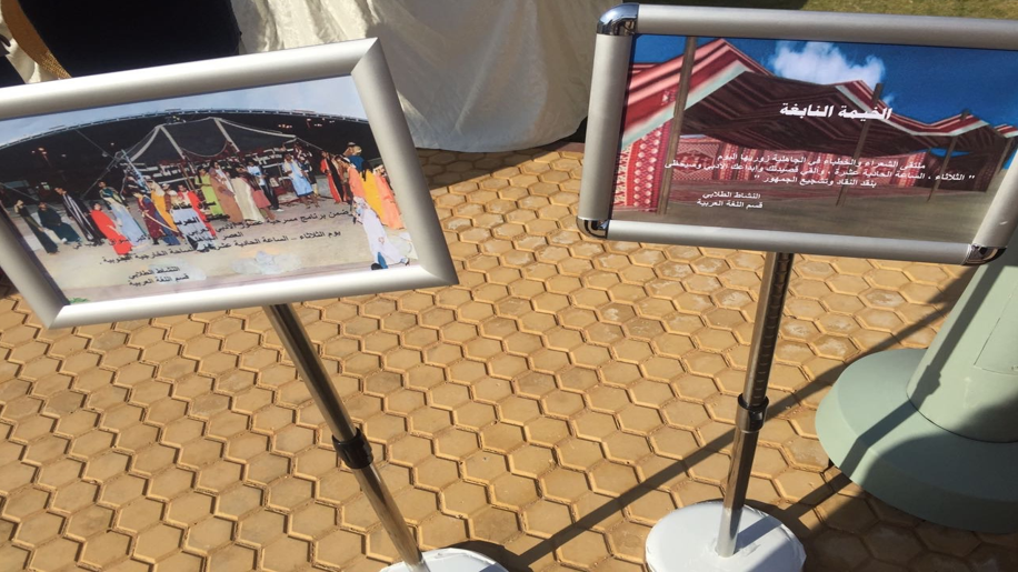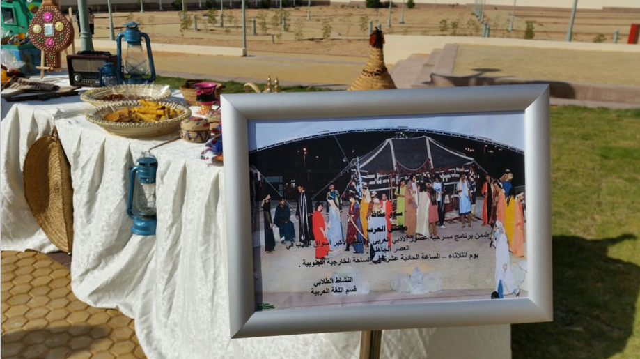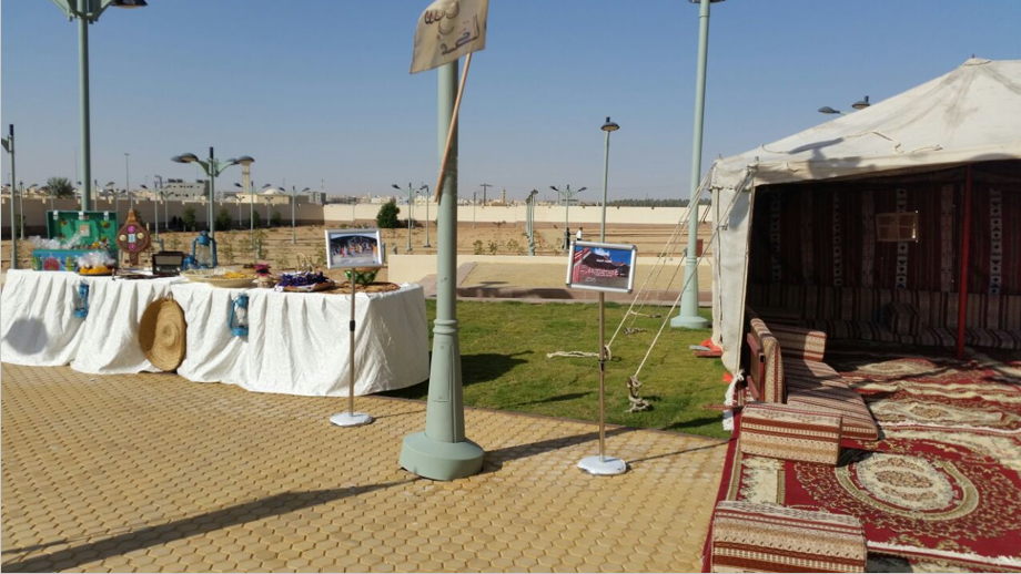 وقد تم نصبت خيمة في الهواء الطلق بالساحة الخارجية للكلية في محاولة للتذكير بخيمة النابغة الذبياني التي كان يجتمع فيها الشعراء ويلقون قصائدهم ،حيث ألقت مجموعة من الطالبات قصائدهن بحضور العميدة والوكيلات اللاتي استقبلنهن الطالبات بالترحيب بنشيد جماعي ،ثم استضافوهن بأطباق من صنع أيديهن ، بعدها تجول الحضور في السوق الذي اشتمل على ركن من التراث وركن من المبيعات تحت اسم (دلوني على السوق ).