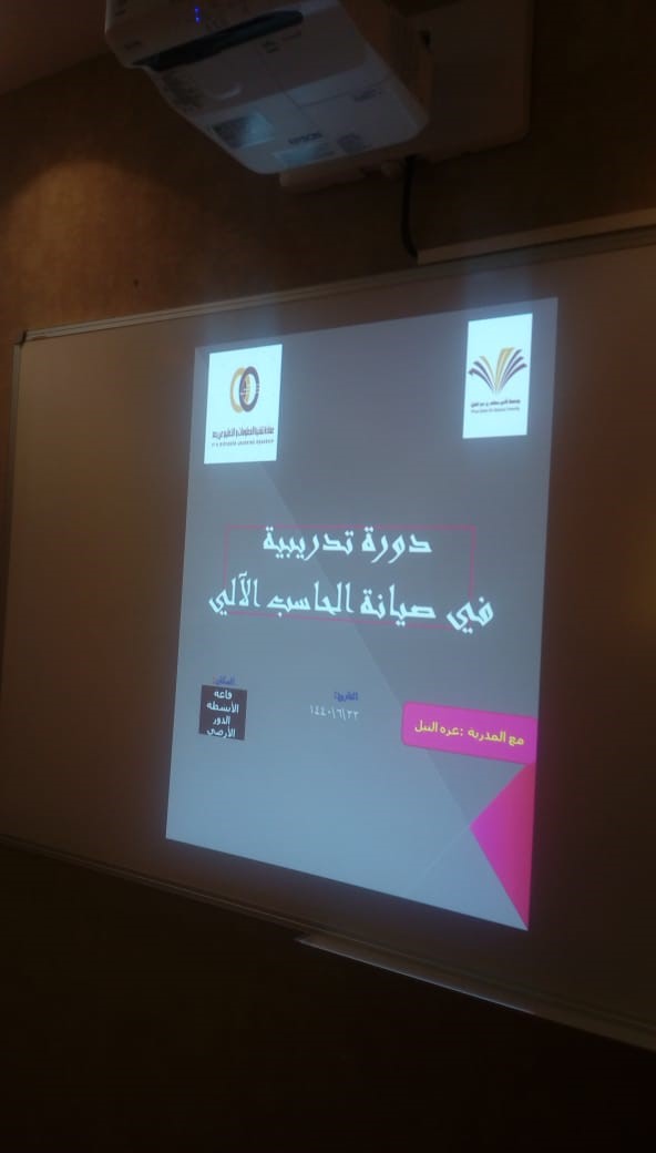 أقامت وحدة تقنية المعلومات والتعلم عن بعد بكلية المجتمع بالخرج وضمن فعاليات الملتقي التقني الاول المقام بالكلية دوره تدريبيه بعنوان "صيانة الحاسب الآلي وملحقاته" من تقديم الأستاذة/ عزه النيل عبد الله والأستاذة/ ناهد عصري أبوزيد.