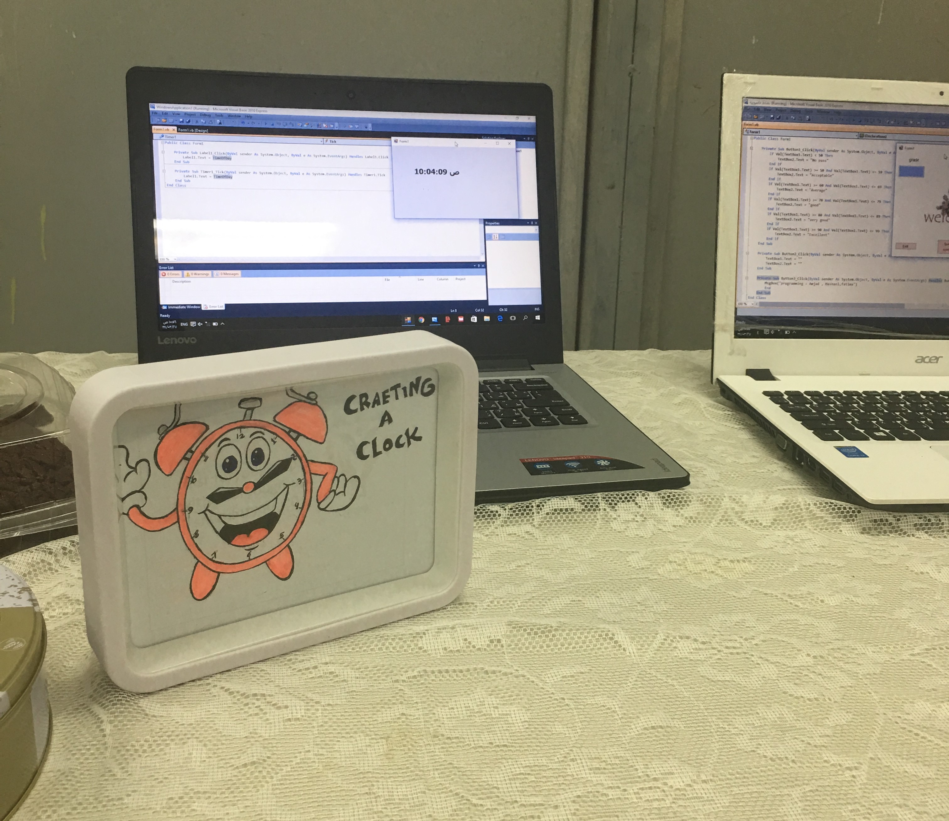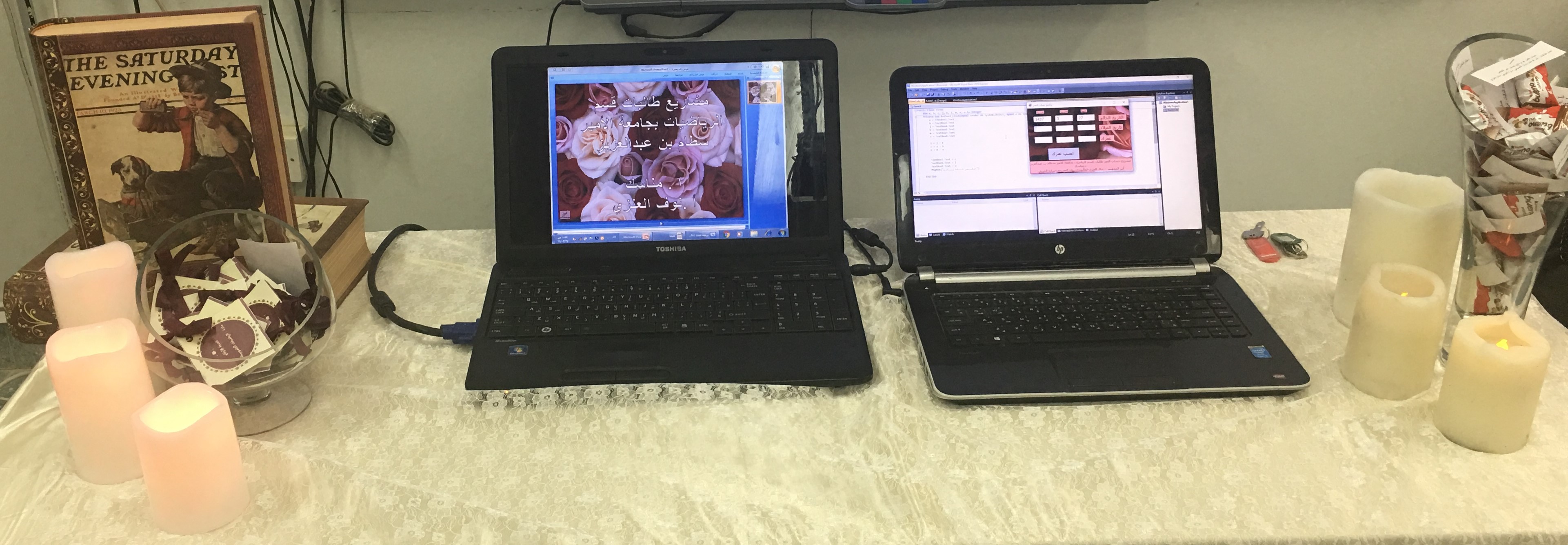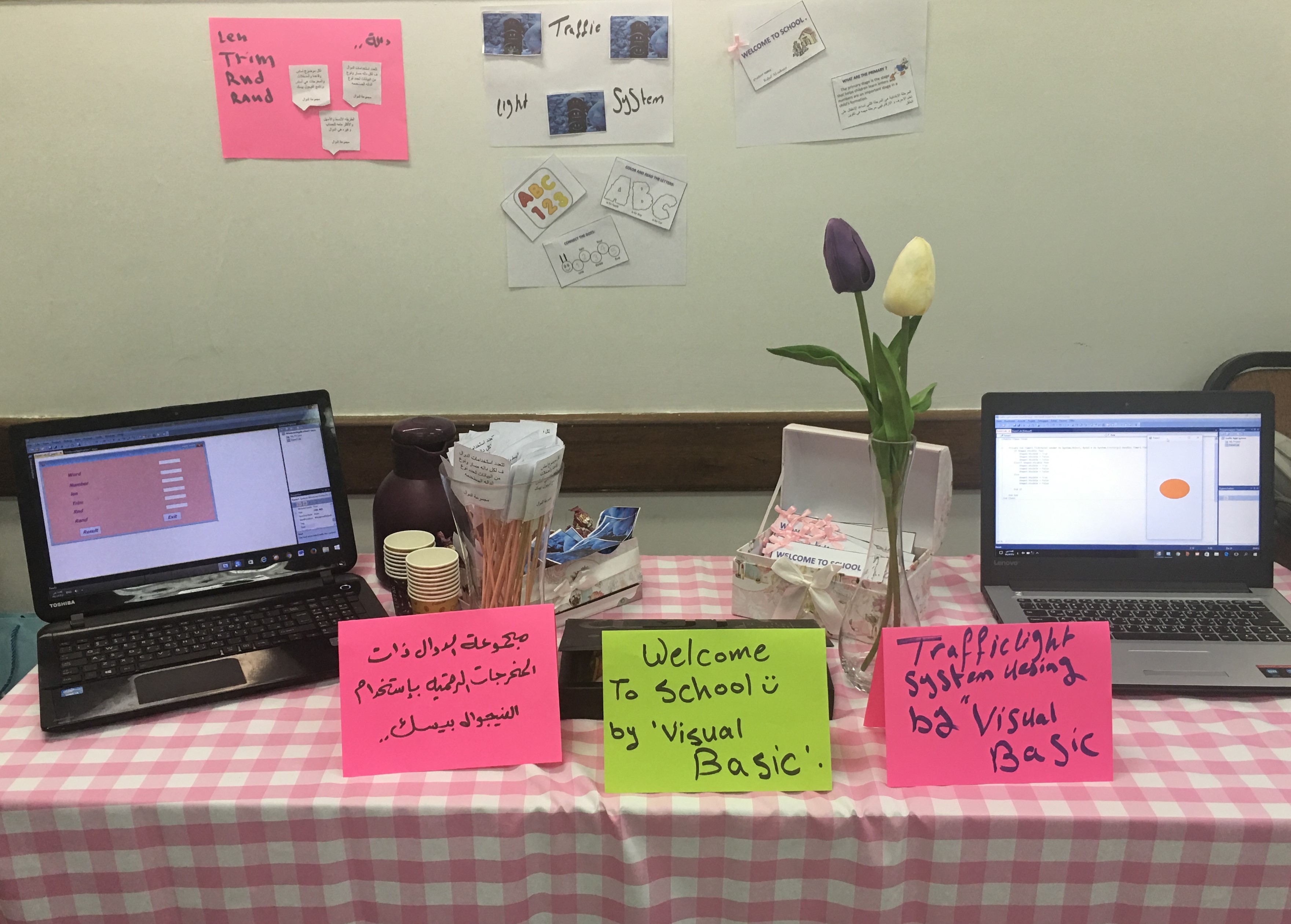 · تصميم عدة مشاريع بإستخدام برنامج فيجول بيسك وكانت البرامج هي(برنامج الألة الحاسبة,لعبة ترتيب الأرقام,حساب العمر,الساعة المؤقتة,حساب التقدير لدرجات الطالبات,تصميم برنامج القرأن وأذكار الصباح والمساء,برنامج wellcom to school لطلاب المرحلة الإبتدائية,ومجموعة الدوال الرقمية وإشارة المرور).