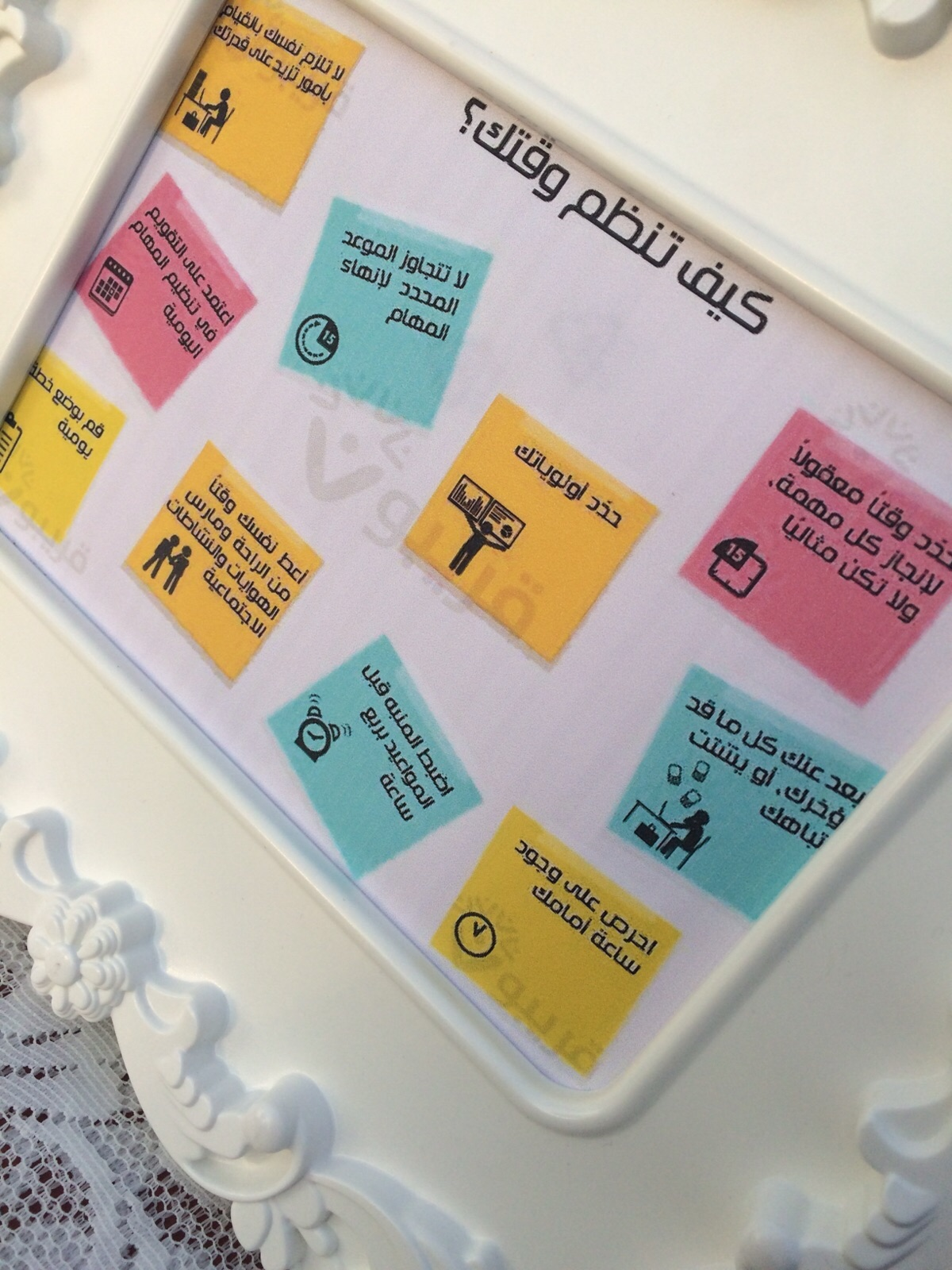 حيث تم فيه توعية الزوار حول أهمية الوقت وكيفية تنظيمه من خلال تقديم بعض النصائح التي تساعد في محاولة التغلب على مشكلة عدم توفر الوقت و صعوبة إدارته خاصة فيما يسمى "بمضيعات الوقت" حيث كان من أسبابها القيام بالكثير من الأعمال التي لا تساعد على الاستفادة من أوقات الفراغ بل العكس وقد تم شرحها وتوضيحها.