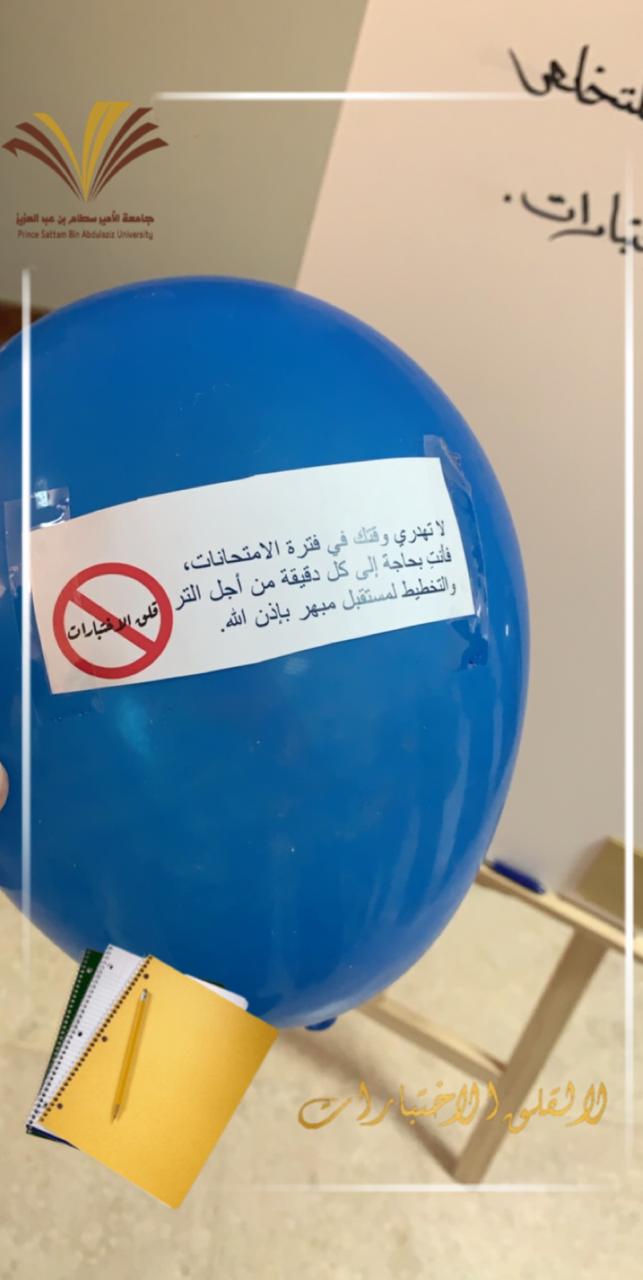 تزامنًا مع فترة ما قبل الاختبارات النهائية بكلية العلوم والدراسات الإنسانية بالخرج قمن طالبات بعمل نشاط تابع لمادة مهارات حياتية مادة حرة بإشراف الأستاذة منيرة الجندول بعنوان (قلق الاختبار) هدفه توضيح استراتيجيات الاستعداد للاختبار وتخطي القلق وذلك في بهو الكلية، حيث تم عرض وتوزيع السناك الصحي وفواصل للكتب وأدعية للاختبارات وغير ذلك من الأمور التي تخفف قلق وتوتر الاختبار على الطالبات.