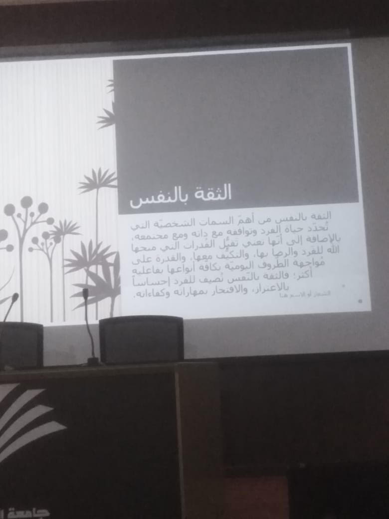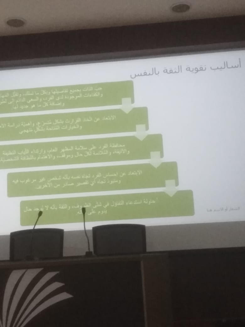 كما تطرقت الأستاذة /هديل محمد العتيبي إلى أن الجمال هو الجمال الداخلي وأوضحت أساليب الثقة بالنفس وطرق تعزيزها ومقوماتها التي بدون اكتسابها يصبح الفرد معرض للتنمر والايذاء النفسي بسهولة