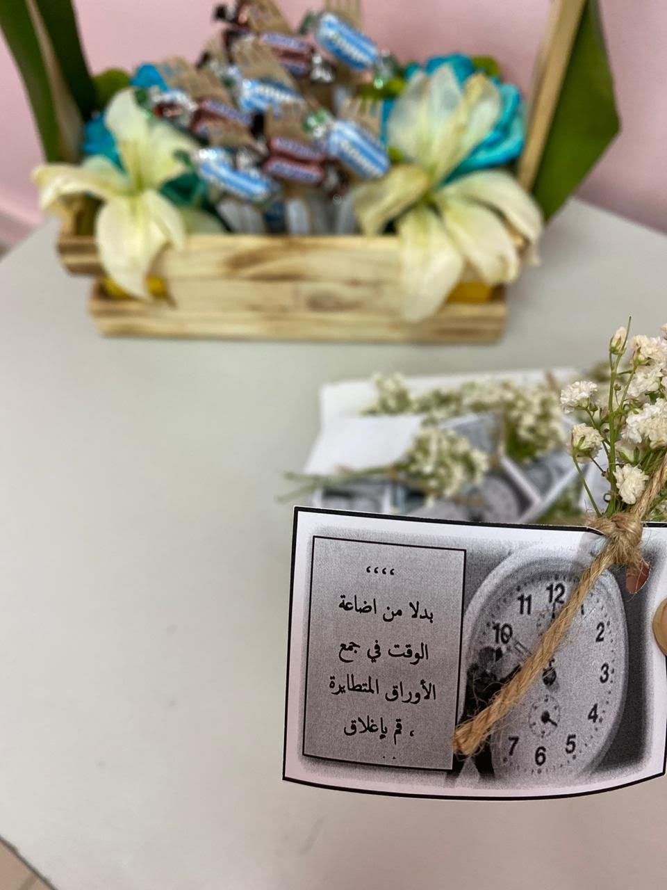 كما وضحت الدكتورة شيراز للطالبات أهمية المحافظة على الوقت وطرق استثماره فيما ينفع وحث الإسلام على ذلك .