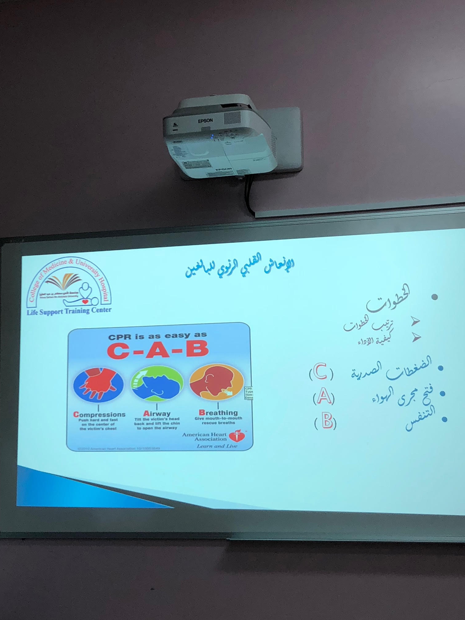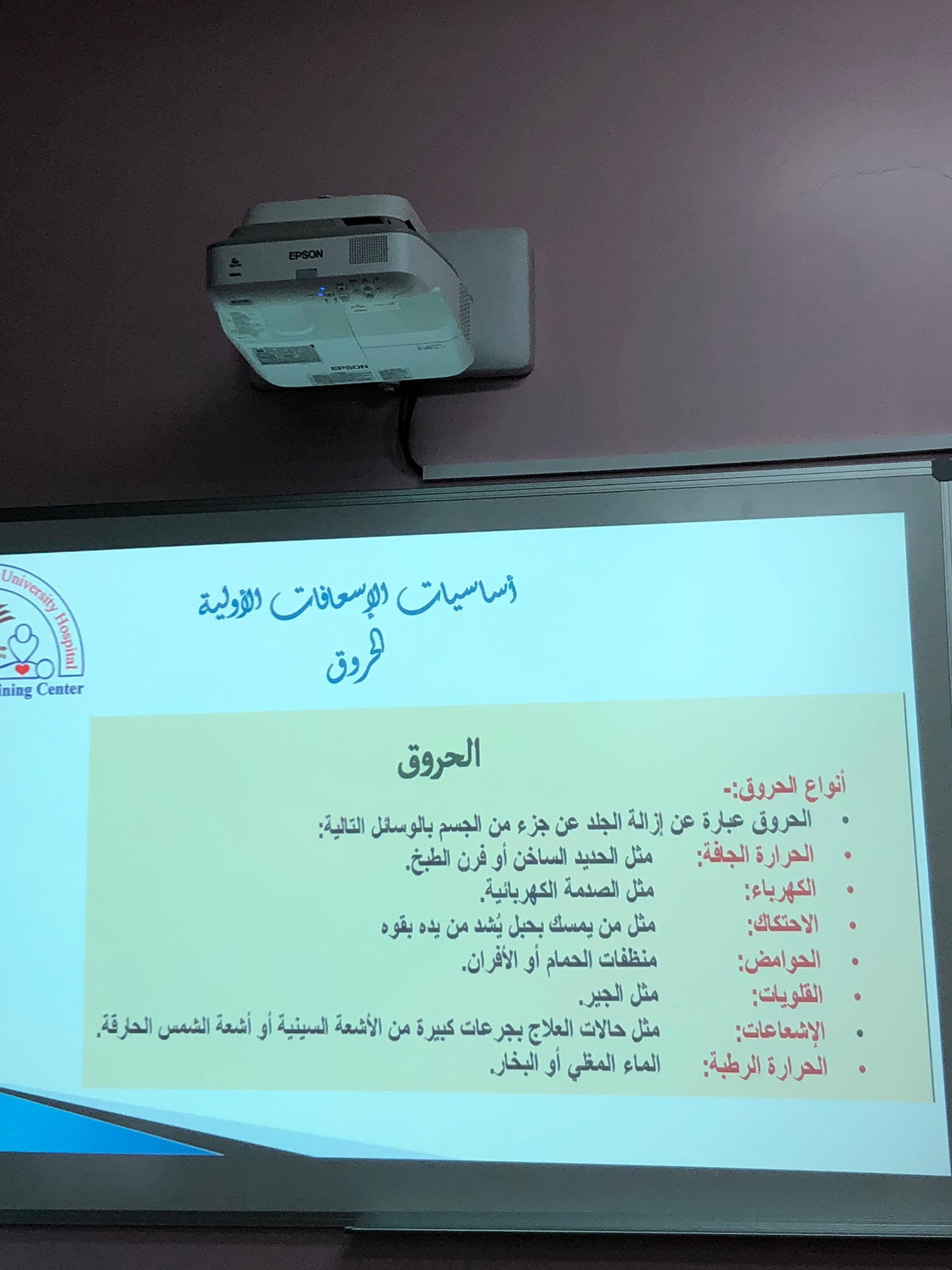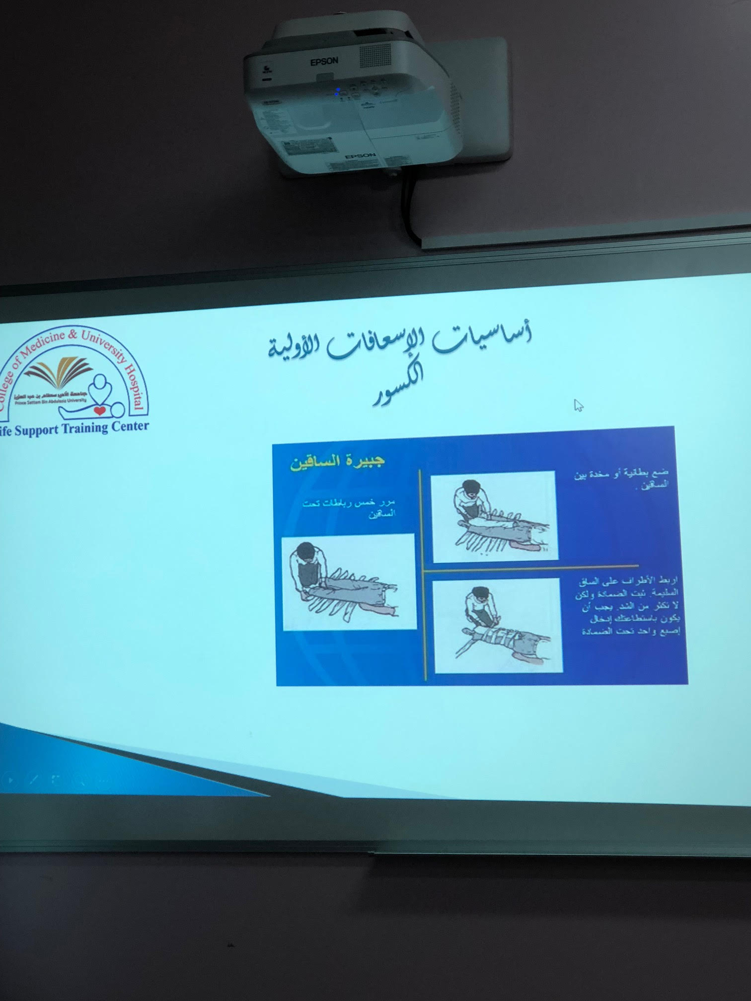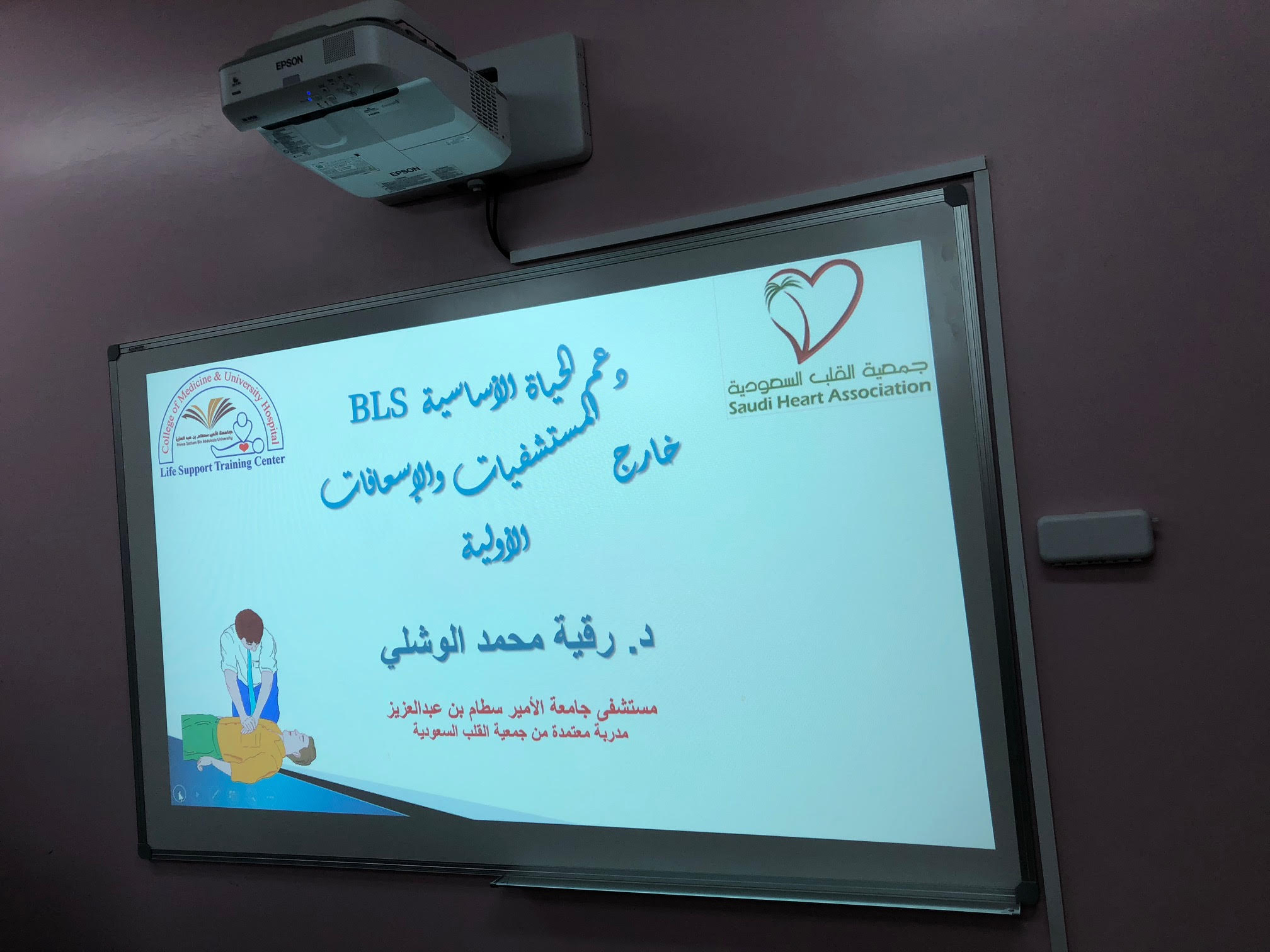 أقامت وحدة العلاقات العامة والإعلام بكلية المجتمع بالخرج وبإعداد وتنسيق مشرفة وحدة العلاقات العامة والإعلام بالكلية الأستاذة/ نوره بنت دحيم الدوسري؛ وبالتعاون مع المستشفى الجامعي برنامج تدريبي بعنوان " أساسيات الإسعافات الأولية" من تقديم الدكتورة/ رقية الوشلي . وذلك يوم الأثنين الموافق 14- 3-1441هـ في قاعة الأنشطة الطلابية بالكلية .