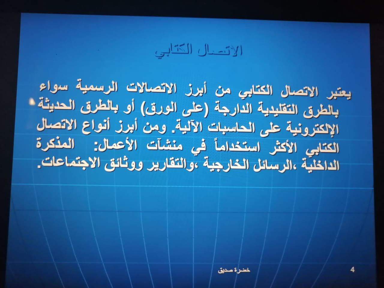 ثم تطرقت إلى موضوع الاتصال الكتابي وأهميته وأبرز أنواعه.