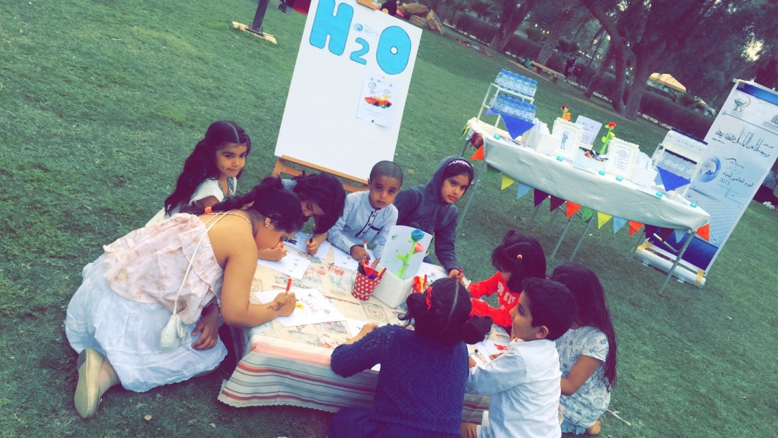 ضمن انشطة لجنة خدمة المجتمع بكلية الصيدلة وبمناسبة الاحتفال باليوم العالمي للمياه نظمت مجموعة من الطالبات ركن تثقيفي عن أهمية الحفا ظ على الماء بهدف التنويه بضرورة حفظ الماء وعدم الإسراف فيه وذلك بعمل ركن توعوي بمشتل الخرج يوم الاحد الموافق 23\6\1436ه ، حيث تحدثن الطالبات في البداية عن أهمية المياه في وجود الحياة على سطح الأرض للإنسان والحيوان والنبات ، وكيف أنه لا يكاد أحدنا يلقي بالا لأهميته إلا عند فقده كليا أو جزئيا حيث أن الماء أعز مفقود وأرخص موجود، كما تم توضيح ضرورة المحافظة عليه، بعدم إهداره فيما لا طائل من ورائه، مسترشدين بالهدى النبوي الذي يحذرنا من الإسراف في الماء، حتى ولو كان أحدنا على نهر جار، حيث يدل ذلك أن للماء من القيمة والأهمية ما يجعل مشروعية استعماله مقتصرة فقط على حدود الحاجة دون تجاوزها، وأن من تعود على الاستهلاك غير المبرر للماء بالإسراف فيه ولو على شواطئ الأنهار، فإن ذلك سيقوده قطعا إلى التعود على الإسراف وإهدار عطية من أثمن العطايا الربانية وهي الماء ، كما تم توضيح الكمية اللازمة للشخص الواحد من الماء في اليوم وعن فوائده في الوقاية من العديد من الأمراض بعد إذن الله والأخطار التي من الممكن إصابتنا بها في حال قل شربنا للماء والأوقات المناسبة والصحية أكثر لشربه ،صحب ذلك عمل ركن رسم للأطفال تم فيه تدريب الاطفال بالرسم على الفرق بين العادات الصحيحة والخاطئة لاستعمال المياه في الحياة اليومية وتم توزيع منشورات توعوية عن كيفية الحفاظ على الماء بالإضافة إلى توزيعات لماء زمزم