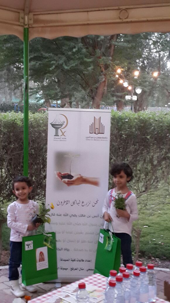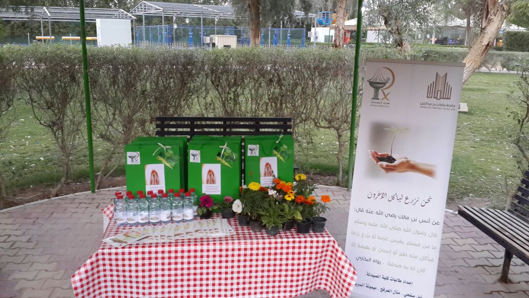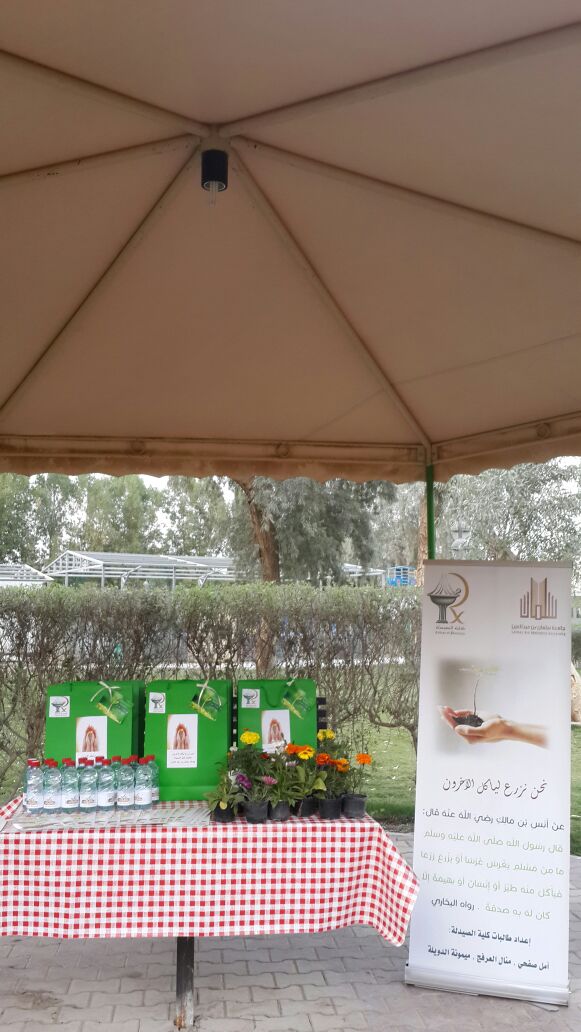 ضمن نشاطات خدمة المجتمع في كلية الصيدلة لأقسام البنات نظمت مجموعة من الطالبات حملة (نحن نزرع ليأكل الاخرين ) وذلك يوم السبت الموافق 2 - 5 - 1436هـ