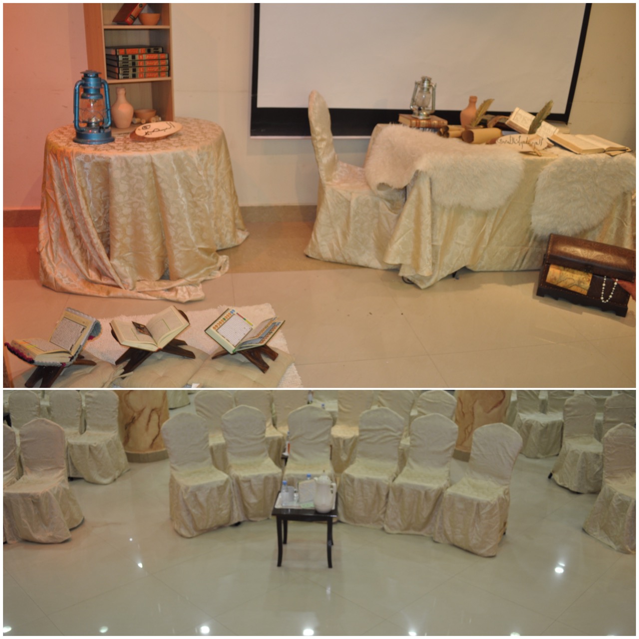 نظمت مشرفة النادي الأدبي أ. نورة مكاوني مساعدة مشرفة العلاقات العامة والإعلام بالمبني الأساسي وبالتعاون مع وحدة العلاقات العامة والإعلام زيارة لمعهد البيان لإعداد معلمات القرآن بالخرج مع 25 طالبة من الكلية لحضور اللقاء التعريفي السنوي الثالث في مقرّ المعهد يوم الخميس1436/4/30هـ والذي كان بعنوان "حياةٌ ونور"