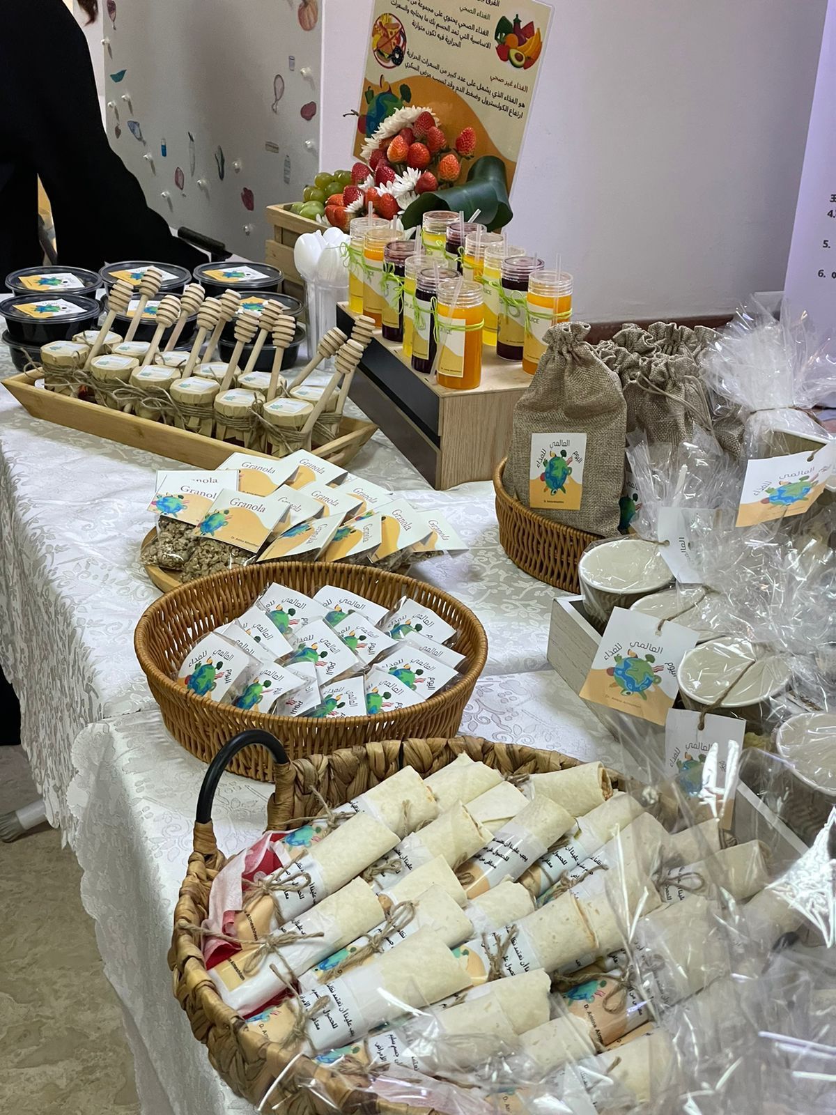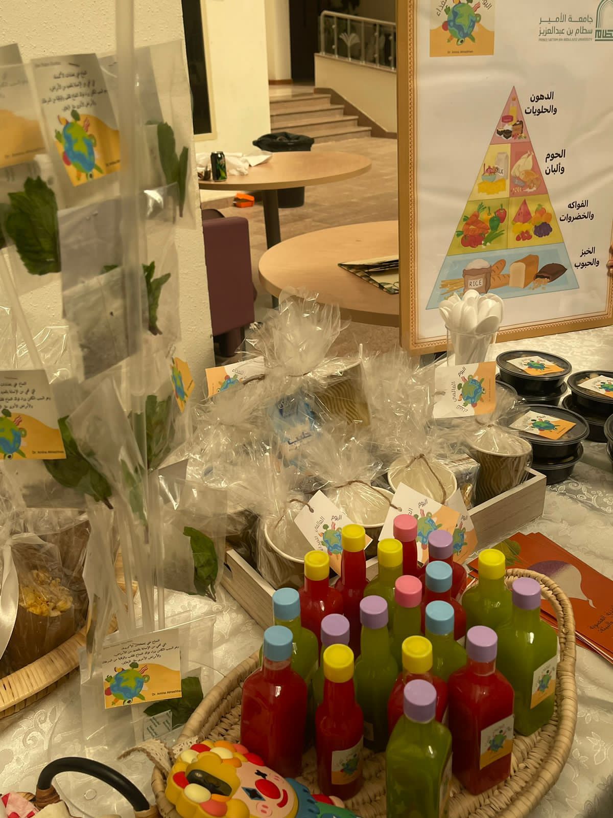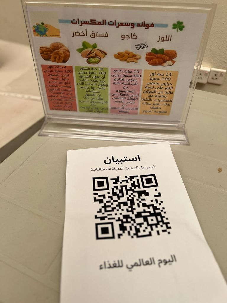 تحت شعار الغذاء والحياة وتفعيل لليوم العالمي للغذاء وبإشراف الدكتورة أمينة عبد الرحمن المشحن أقمن طالبات مقرر أحياء عامة (1) بقسم الأحياء يوم الثلاثاء ٢٣ / ٤ / ١٤٤٥هـ في ساحة الكلية نشاط توعوي عن أهمية الغذاء في المراحل العمرية لحياة الانسان، وأهمية الغذاء العضوي واستبداله على الأغذية المصنعة، ومن خلال مسح رمز الاستجابة السريع تم اطلاع الطالبات على توصيات منظمة الصحة العالمية للاستهلاك اليومي من الغذاء.