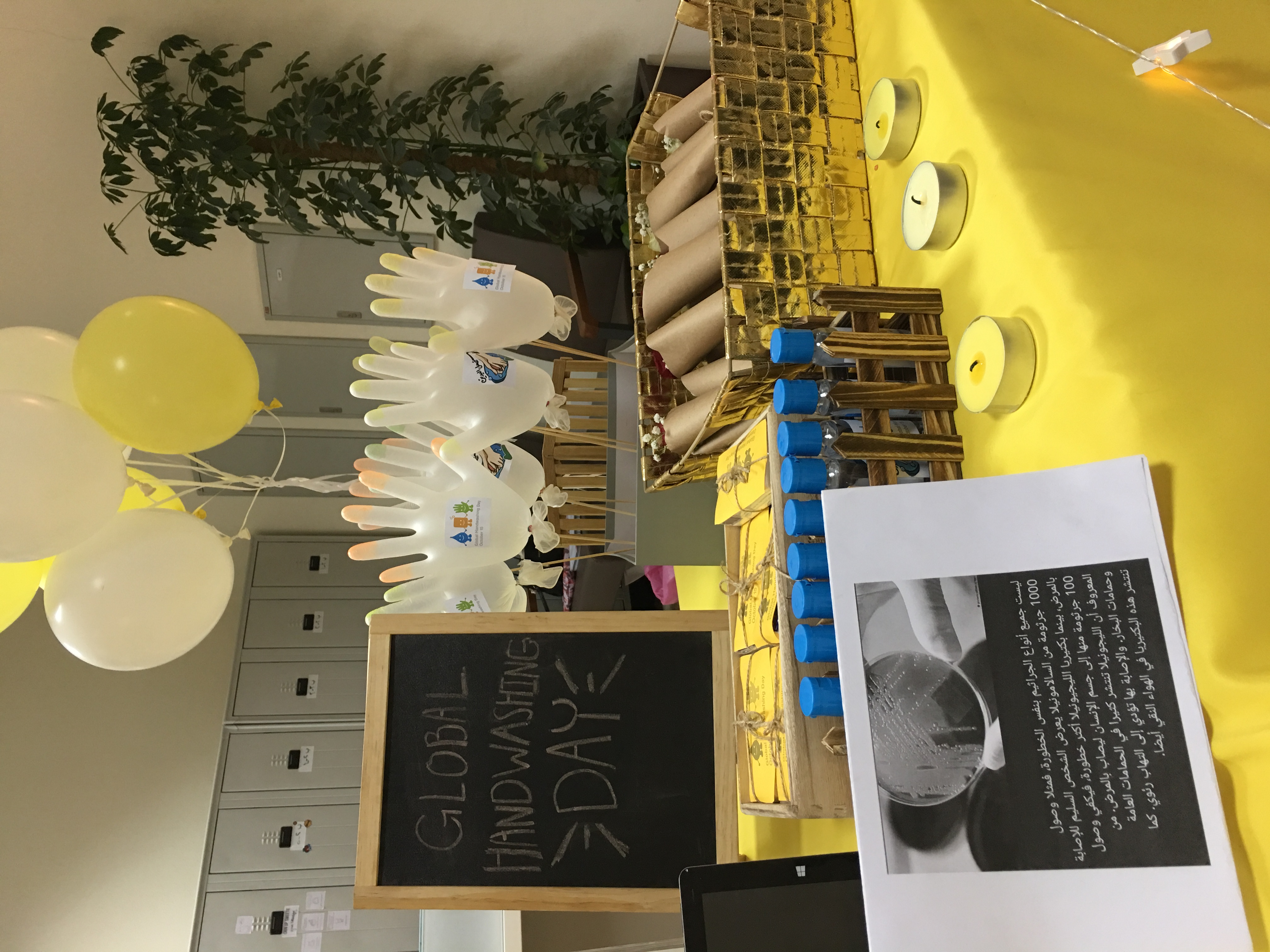 تزامنًا مع اليوم العالمي لغسل اليدين 15 أكتوبر يوم الاثنين قمن طالبات قسم الأحياء في كلية العلوم والدراسات الإنسانية بالخرج في مادة (علم الطفيليات) بإقامة نشاطًا توعوياً بأهمية النظافة الشخصية وبصفة خاصة (غسل الأيدي) بإشراف الدكتورة فرج الله المغازي أمام قسم الأحياء حيث يهدف إلى التوعية بغسل اليدين والطريقة الصحيحة لذلك للحد من انتقال الأمراض وبصفة خاصة المعدية والخطيرة.