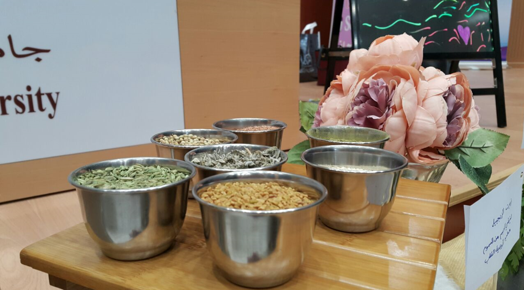 كما تم تقديم عرض لبعض الأمثلة عن الغذاء الصحي والغذاء الضار بصحة ، وعرض لأنواع مختلفة من الصابون والشموع والكورالفوارة التي تم تصنيعها على أيدي طالبات قسم الكيمياء، وأيضا القيام بالتطبيق العملى للطالبات عن طرق تصنيع هذه المنتجات أمام الحاضرات ، بالأضافة إلى عرض لبعض من الزيوت والأعشاب المفيدة لصحة الإنسان على الحاضرات مع الدعوة إلى التقليل من استخدام المواد الكيميائية الضارة التي توجد في كثير من الأدوية الكيميائية.