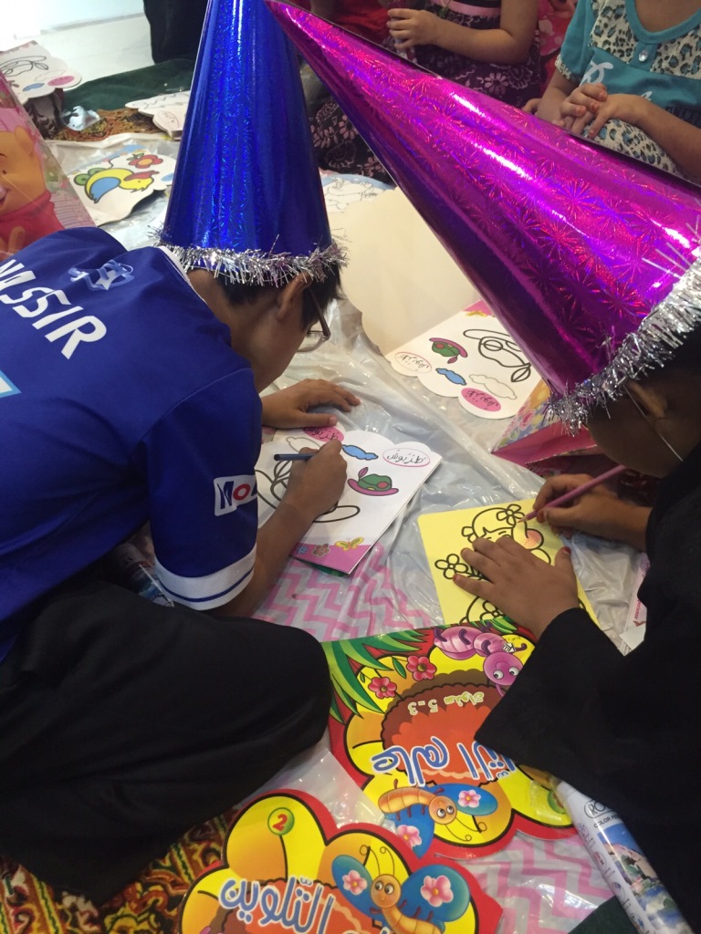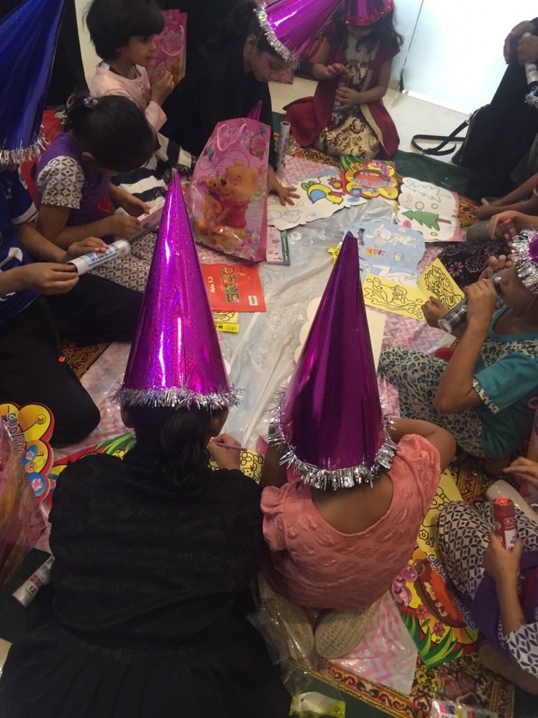 وكانت أ. منيرة عبدالله البجادي مديرة المركز بإستقبال الطالبات وعدد من أعضاء هيئة التدريس , قدمن الطالبات برنامج ثقافي وترفيهي للأطفال من شخصيات كرتونية ومسابقات وتوزيع هدايا وجوائز على الأطفال أدخلت على قلوب هؤلاء الأطفال الفرح والسرور.
