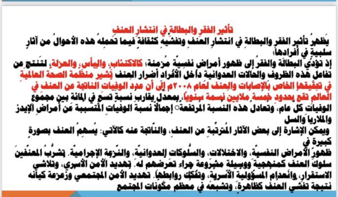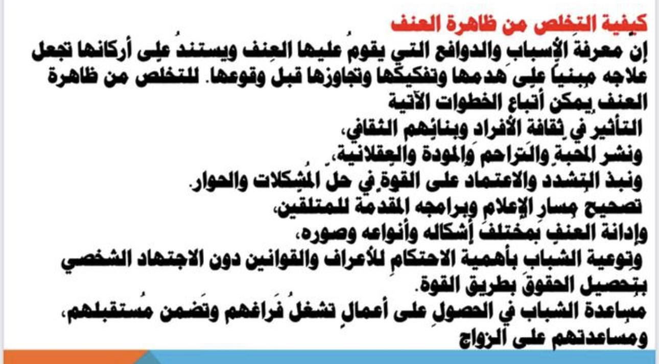وتهدف ورشة العمل إلى تعريف العنف، وبيان صور العنف المختلفة، وتأثير العنف ضد المرأة علي الأمن المجتمعي، والعنف ضد الأطفال والشباب وطرق الحماية. وقد تم مناقشة الطالبات في أثرالعنف الأسري علي أفراد المجتمع مبدين إعجابهن من نوعية هذه الموضوعات لما لها من أهمية بالغة علي أمن وسلامة المجتمع السعودي.