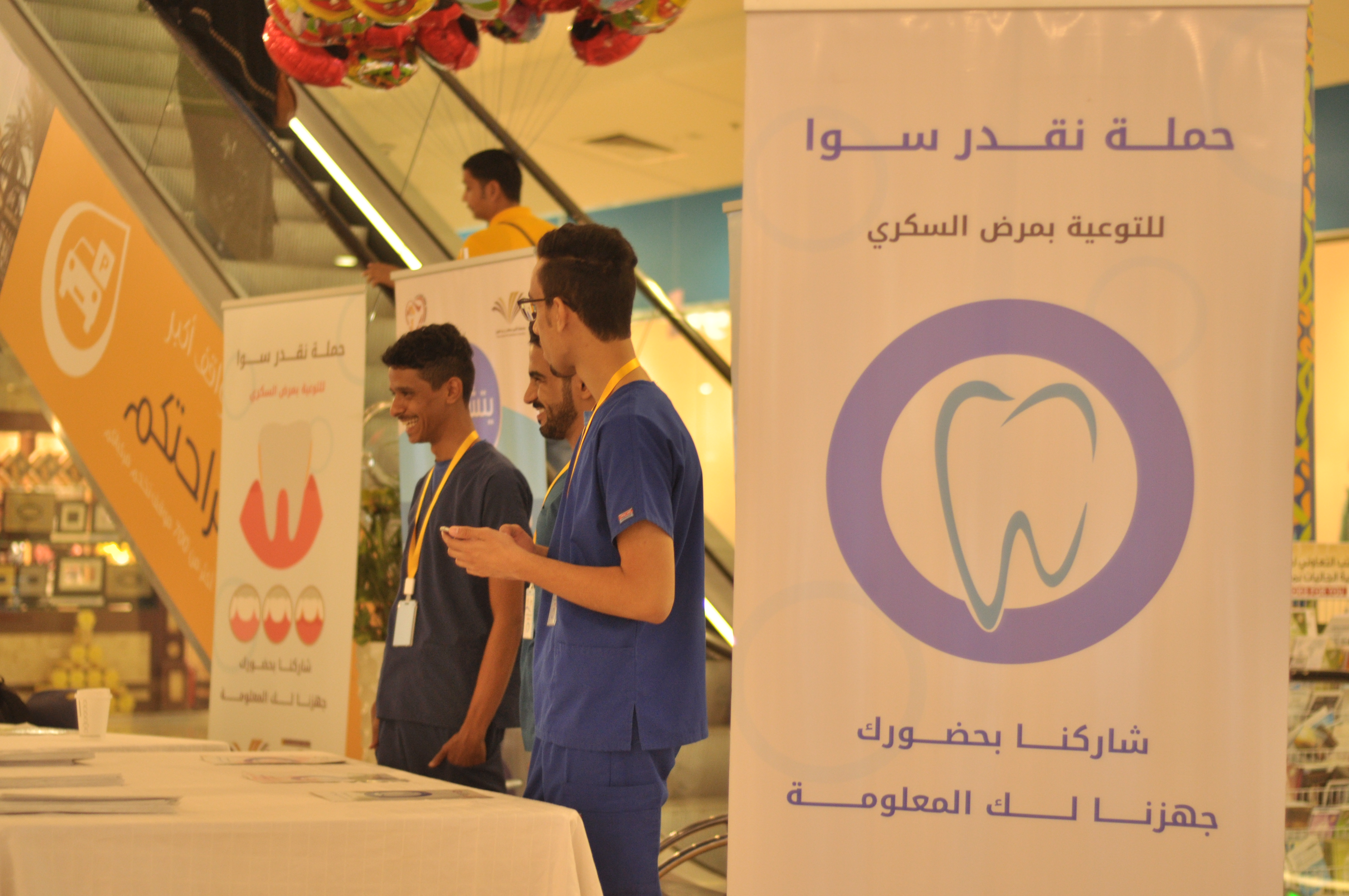 نظمت كلية طب الأسنان حملة نقدر سوا للتوعية بمرض السكري يوم الجمعة الماضي بالحديثي مول و قد شهدت الحملة العديد من الانشطة حيث قام طلاب الكلية بتوعية الزوار بمرض السكري و تأثيره على الاسنان و كيفية تجنب أثاره و العناية بالاسنان. بالاضافة لقيامهم بقياس مستوى السكر في الدم و قياس ضغط الدم ايضا كما قدم الطلاب هدايا رمزية للحضور.