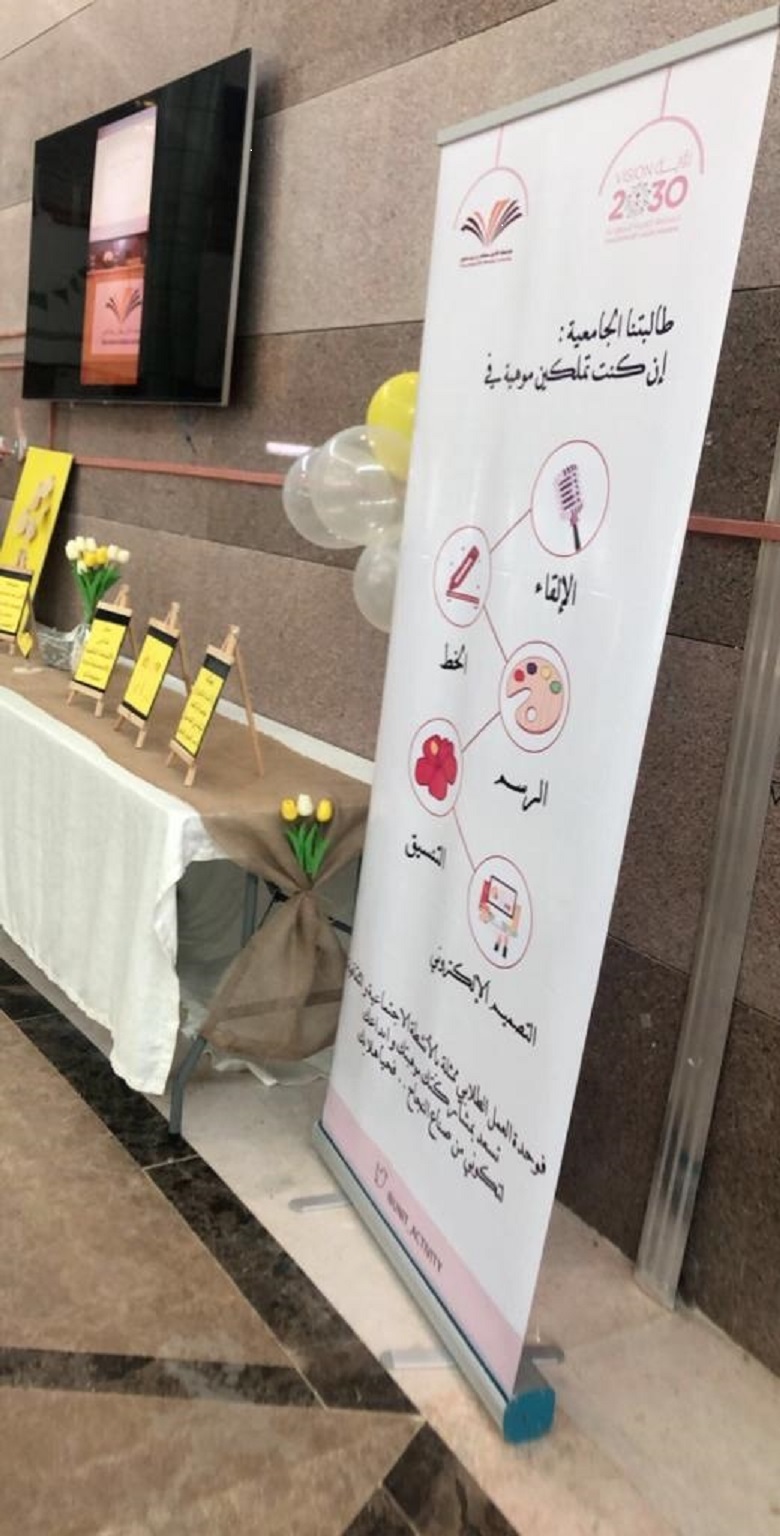إيماناً منا بأن الأنشطة تنمي مهارات الطالبات سواءً الثقافية والاجتماعية والفنية وتزيد من إحساسهن بالمسؤولية والاعتماد على الذات والتعرف على خبرات إيجابية مؤثرة تسمو بهن وترتقي بأدائهن العلمي والاجتماعي لذا أقامت الأستاذة نورة العويمر بالتنسيق مع وحدة العمل الطلابي والطالبة دلال بنت مهدي آل رشيد يوم الاربعاء الموافق: 26/1/1441هـ في بهو الكلية فعالية من أهم فعاليات الوحدة التي تعقد في بداية كل فصل دراسي تدشين الأنشطة الثقافية والاجتماعية لتعريف الطالبات على أقسام الوحدة والأنشطة التي تقدمها وتشجيعهن ليكن ضمن فريق عمل وحدة العمل الطلابي واستقبال مقترحاتهن وأفكارهن وأعلن للطالبات بأن التسجيل متاح إلكتروني https://forms.gle/my4oNZCBJPLT1VEy9 لمدة شهر ويتجدد بداية كل فصل دراسي .