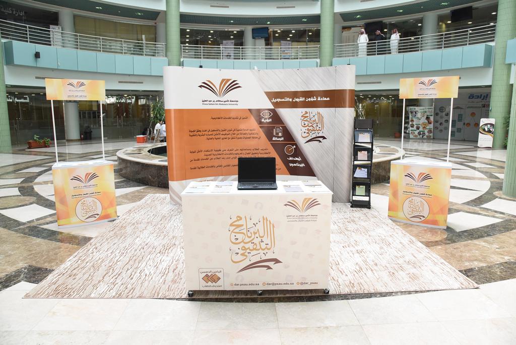 دشن مساعد وكيل الجامعة للشؤون التعليمية والأكاديمية الدكتور مشاري العصيمي صباح اليوم الأربعاء 8 / 6 / 1440هـ في بهو مبنى كلية العلوم والدراسات الإنسانية برنامج تثقيفي يهدف لتعزيز الوعي بأنشطة عمادة شؤون القبول والتسجيل، هذا وقد حضر التدشين كلاً من سعادة عميد عمادة شؤون القبول والتسجيل الدكتور عبدالعزيز الصقر وسعادة وكيل العمادة للشؤون الفنية الدكتور هشام العبد الجبار وكافة منسوبي العمادة.