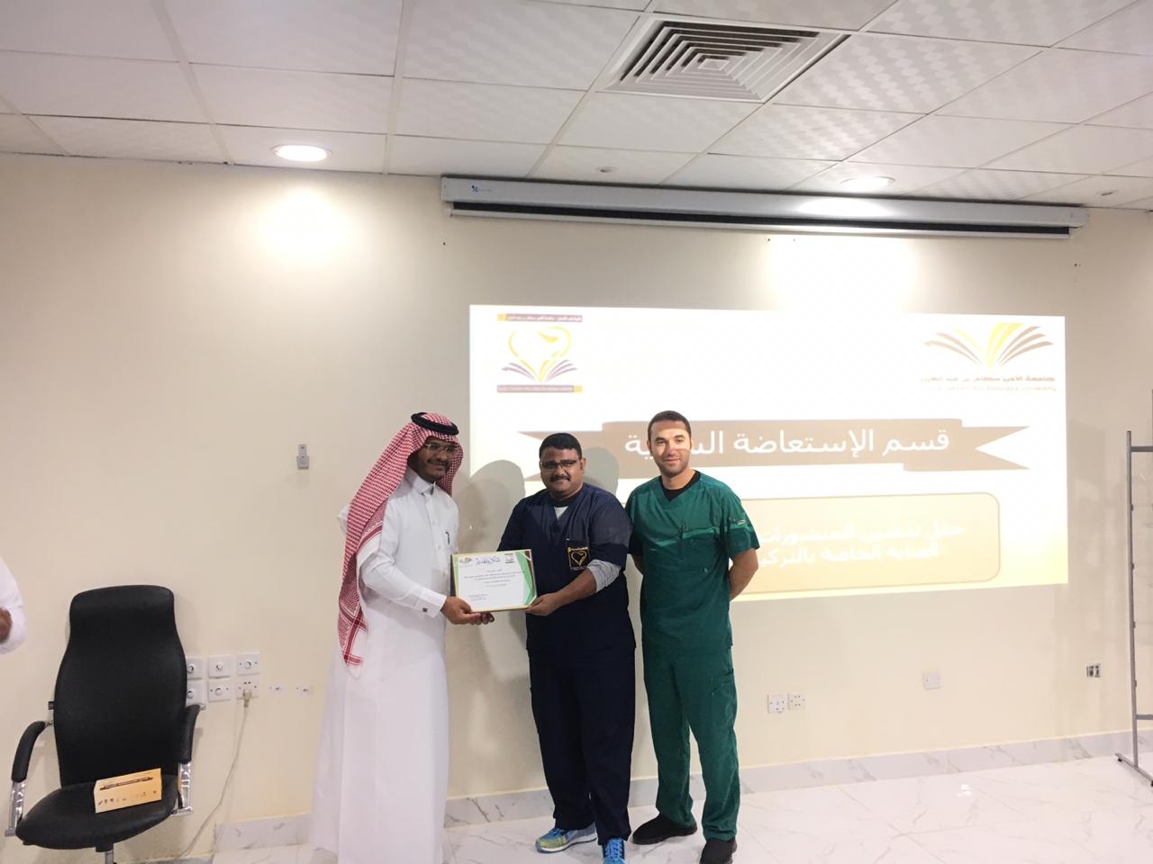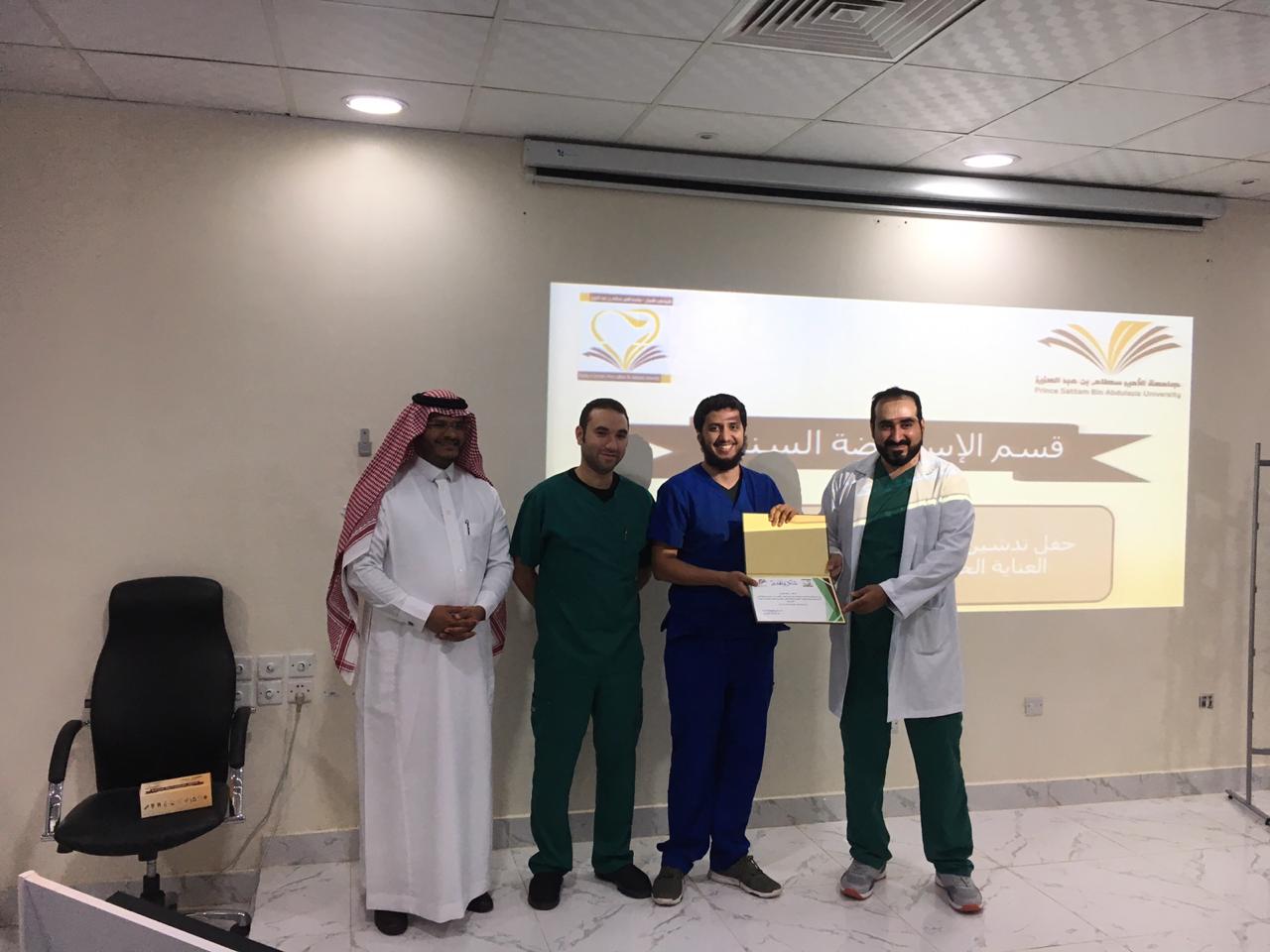 وانتهى الحفل بالتكريم من قبل رئيس قسم الاستعاضة السنية د. خالد الزهراني وعميد كلية طب الأسنان المكلف الدكتور عبدالوهاب أبو درمان، و وكيل كلية طب الأسنان للشؤون العلاجية الدكتور عبدالفتاح العظمة للمشرفين على المبادرة وأيضاً تم تكريم مقرري المواد في القسم للعام الدراسي الماضي 1438-1439 هـ وذلك تقديراً لجهودهم المبذولة في الإشراف على مقررات العام الماضي.