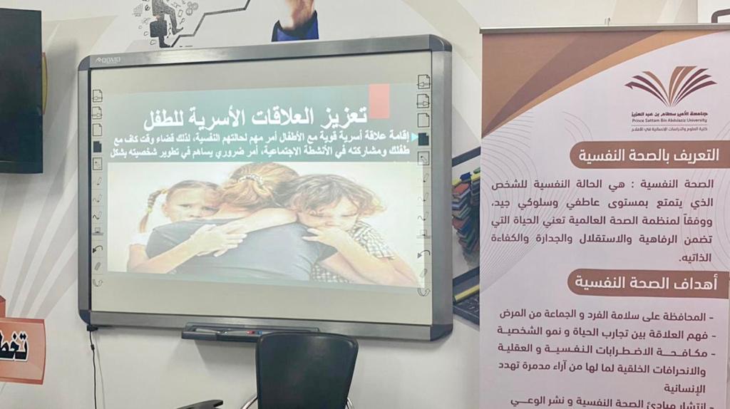 أقامت وحدة العمل الطلابي بكلية العلوم والدراسات الإنسانية بالأفلاج ( أقسام الطالبات ) يوم الأحد 1443/3/4 هـ في قاعة التدريب برنامج بعنوان ( اليوم العالمي للصحة النفسية ) قدمه أعضاء قسم رياض الأطفال ، دارت محاور البرنامج حول مفهوم الصحة النفسية ، ومفهومها عند مدارس علم النفس ، وأهدافها ومظاهرها ، وكذلك أهميتها ، والعوامل المؤثرة فيها .