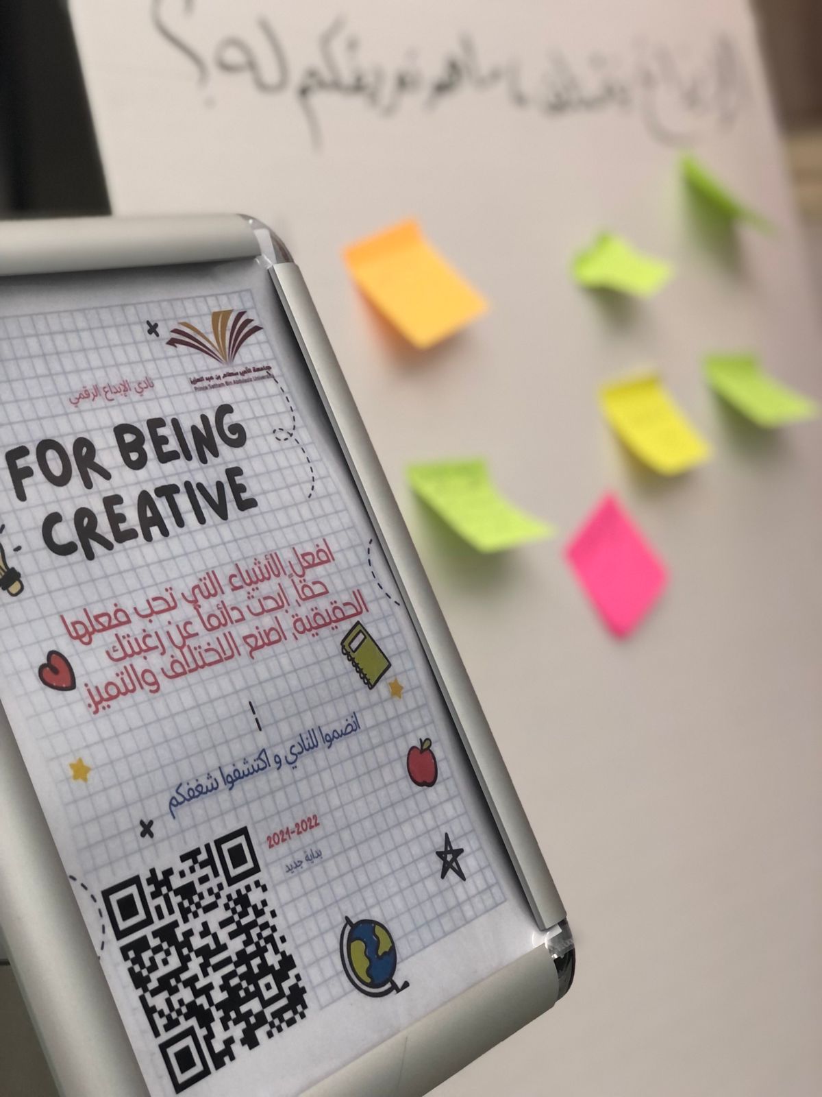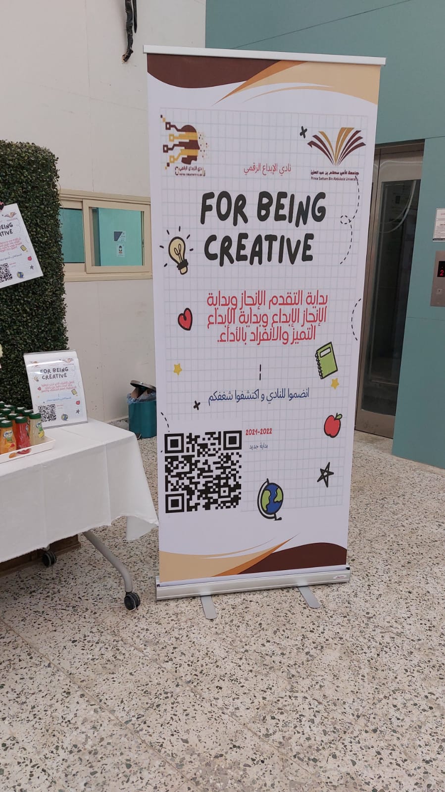 نظمت كلية هندسة وعلوم الحاسب بإشراف الأستاذة جابين نزير بافتتاح نادي الابداع الرقمي ودعوة الطالبات للتسجيل فيه يوم الثلاثاء بتاريخ 06/03/1443هـ لموافق 12/10/2021م في ساحة الكلية.