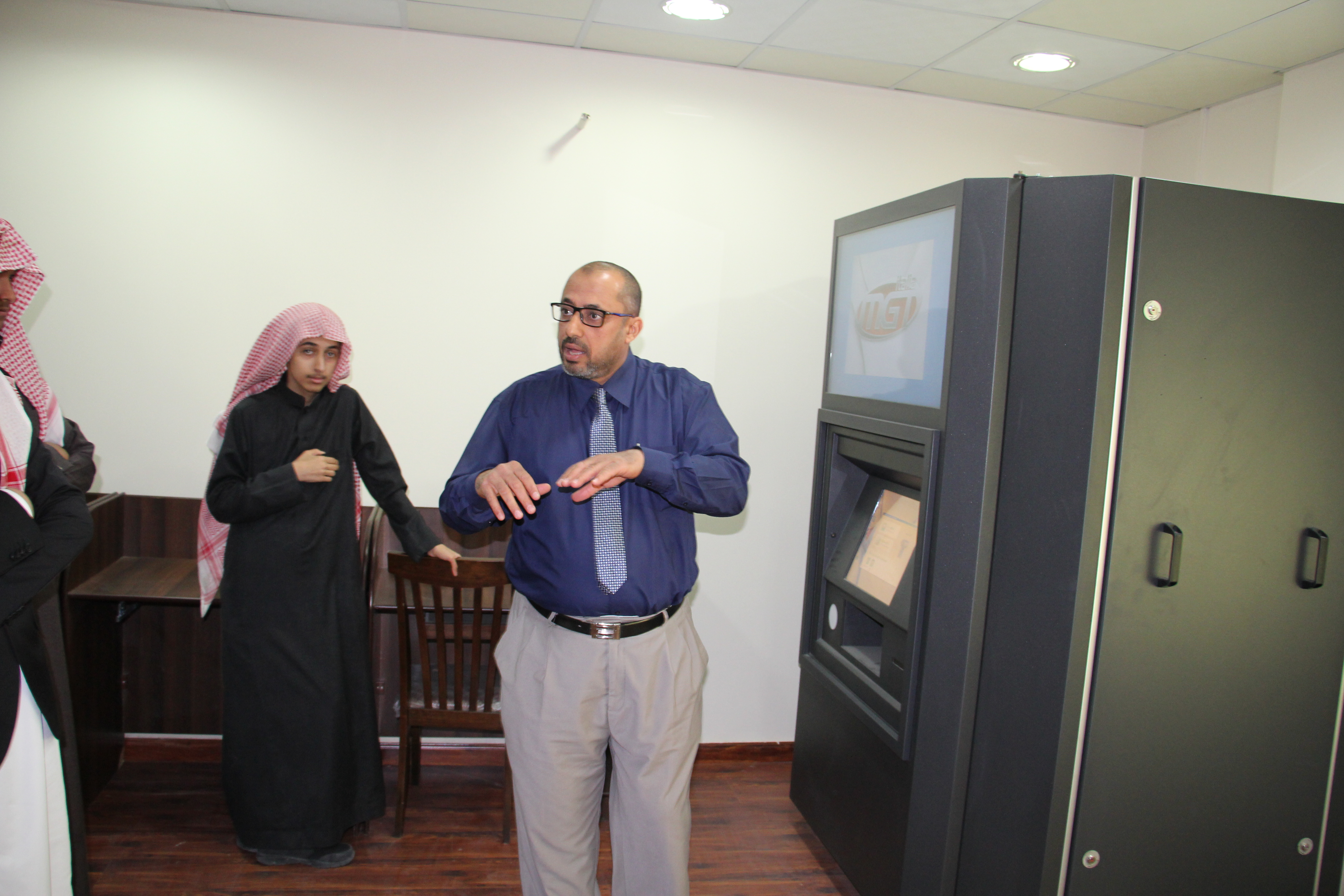 ثم انتقل الوفد للأندية الطلابية واستمع الوفد لنبذة عن الأندية الطلابية، والأهداف التي تسعى لتحقيقها، وتم تبيين تنوعت هذه الأندية وهي النادي التقني، ونادي العمل التطوعي، ونادي الجوالة، والنادي العلمي، والنادي الرياضي، والنادي الثقافي الاجتماعي، والنادي الإعلامي، ونادي المتفوقين والمبتكرين، وبعد ذلك توجه الوفد إلى مقر المجلس الاستشاري الطلابي وتعرف الوفد على مهام المجلس وكيفية تكوينه، وتعرف الوفد كذلك على المكتبة الإلكترونية واستمع الضيوف لشرح يوضح كيفية الاستفادة من هذه المكتبة الجديدة من نوعها.