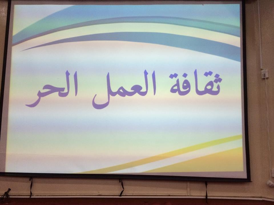 أقام نادي الخدمة المجتمعية وحدة الخدمة المجتمعية في كلية العلوم والدراسات الانسانية بحوطة بني تميم يوم الاربعاء 26/1/1436هـ ورشة عمل عن ثقافة العمل الحر في مسرح الكلية، وبحضور عميدة كلية أ.د. عواطف بنت أحمد هندي وطالبات ومنسوبات الكلية.