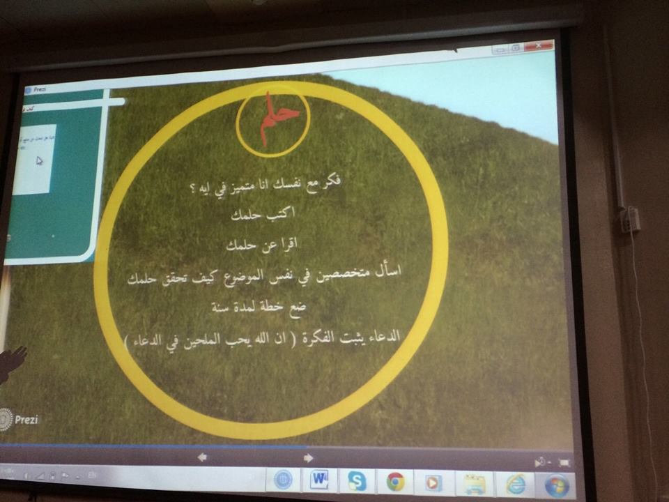 وقدمت الورشة مشرفة النادي الأستاذة باتعة الجعفري، وبدأت بعرض بور بوينت وضربت أمثلة لأشخاص من ذوي المكانة على مستوى المملكة وفي العالم حيث أوضحت كيف بدأوا عملهم وكيف استثمروا جهودهم وكيفية وصولهم الى مراحل متقدمة في المملكة أو على مستوى العالم .
