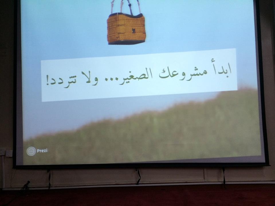 وتم وتوثيق تلك المواضيع بمقاطع من الفيديو وفي نهاية الورشة وختمت العرض بمقولة جميلة وهي ابداء مشروعك الصغير .... ولا تتردد.