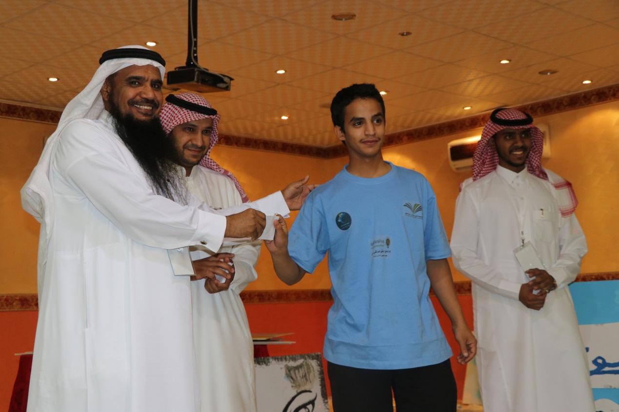 وفي ختام البرنامج كرم سعادة رئيس الوحدة الطلاب الفائزين وشكر جميع الطلاب على تفاعلهم وحسن تعونهم مع اللجان القائمة على البرنامج كما تم تكريم الأستاذ إبراهيم بن محمد التميمي المشرف على المركز على جهوده في وتعاونه مع اللجان العاملة في البرنامج .