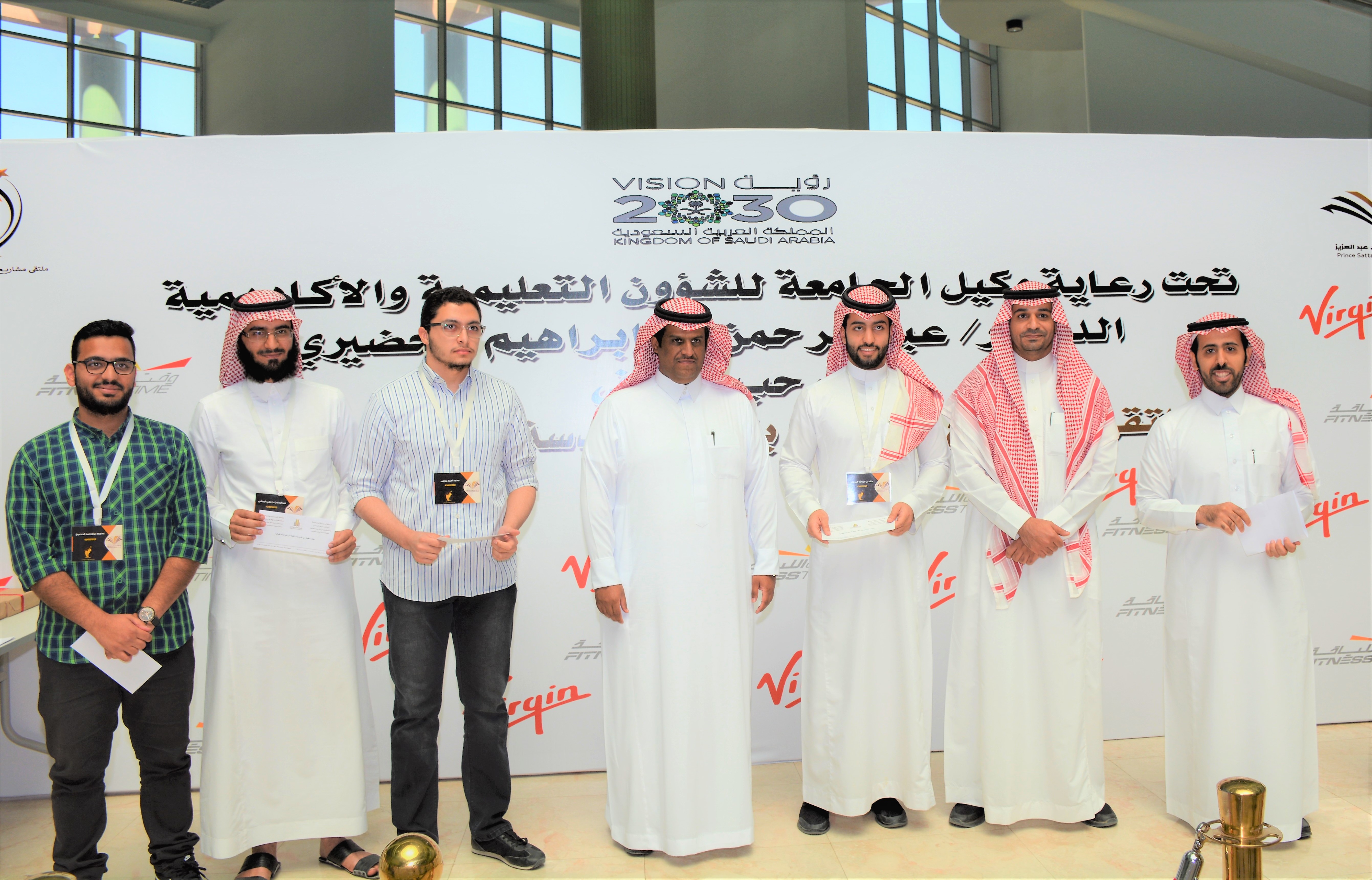 وقام سعادة الدكتور العصيمي في نهاية الجولة بتكريم المجموعات الفائزة في مشاريع التخرج.