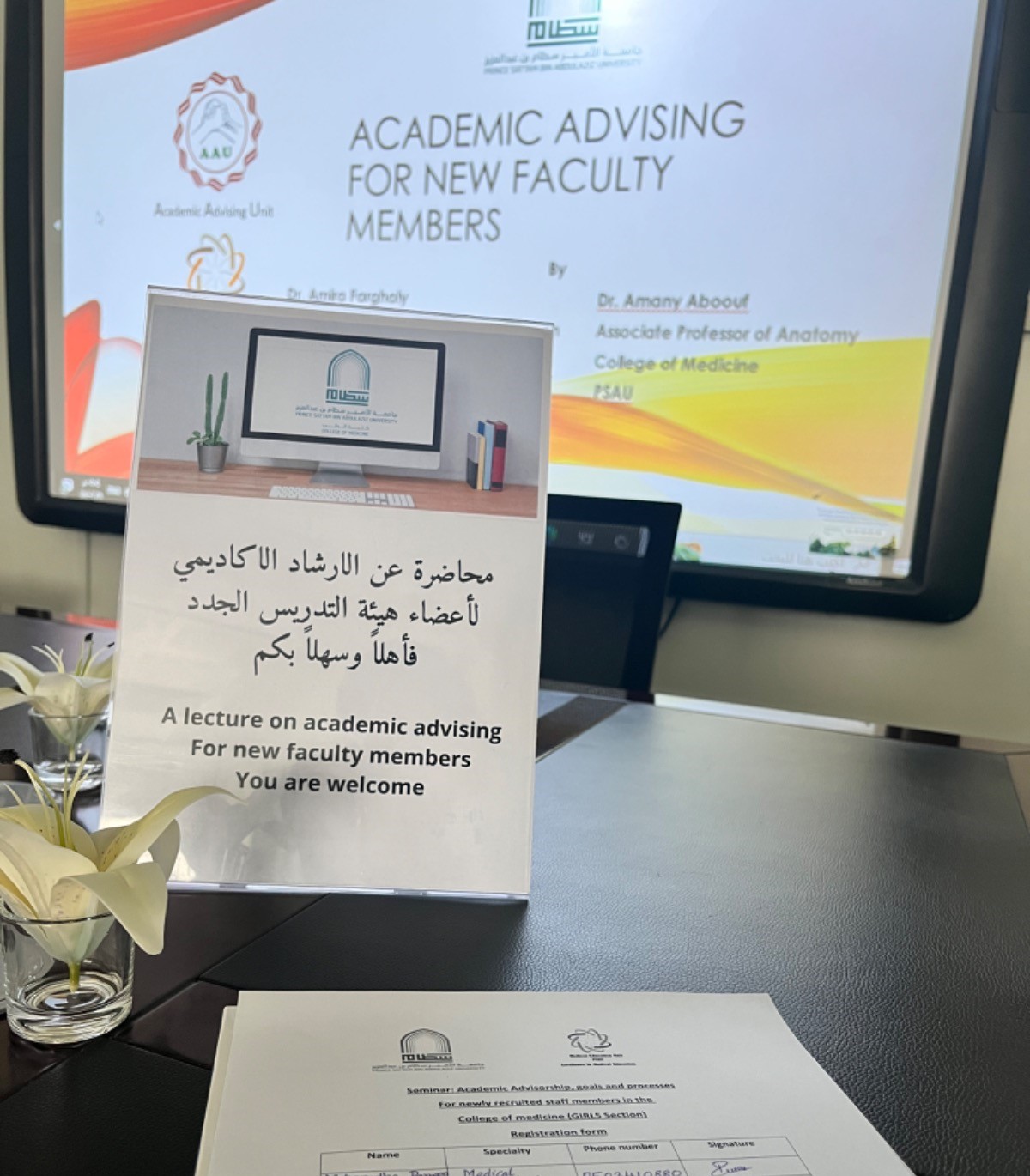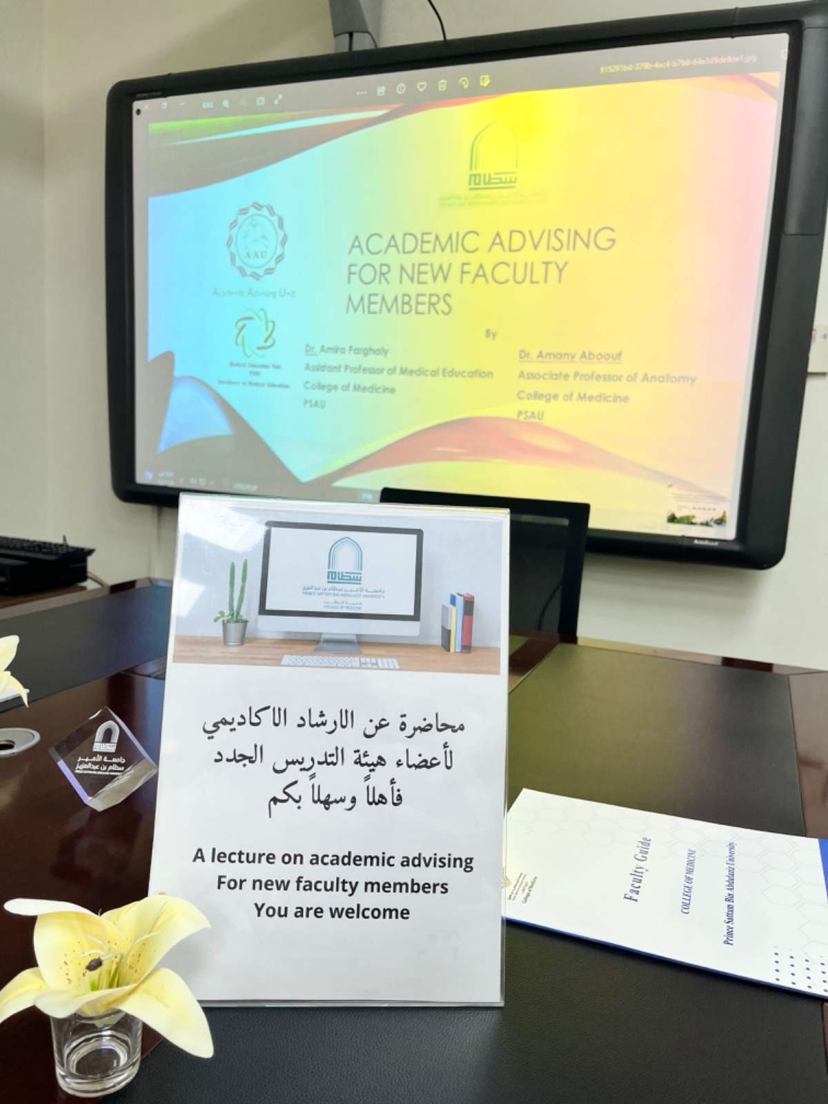أقامت كلية الطب مُحاضرة في يوم الاثنين الموافق ١٩صفر ١٤٤٥هـ - ٤سبتمبر ٢٠٢٣م بعنوان " الإرشاد الأكاديمي لأعضاء هيئة التدريس الجدد" بمقر قسم الطالبات قدمها كلاً من : د. أماني مصطفى أبو عوف (مساعدة الوكيلة لشؤون الطالبات) ود. أميرة فرغلي (مساعدة الوكيلة لشؤون الجودة والدراسات العليا) وبحضور أعضاء هيئة التدريس الجدد والذي يهدف إلى تعريف الأكاديميين الجدد بأهداف وعمليات الإرشاد الأكاديمي في الكلية وتم تزويد الأعضاء بدليل عضو هيئة التدريس والإجابة على جميع استفساراتهن.