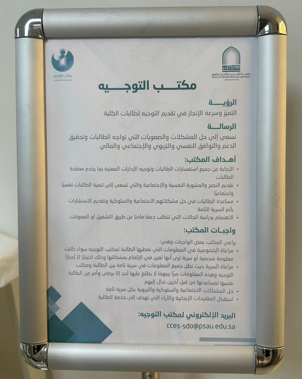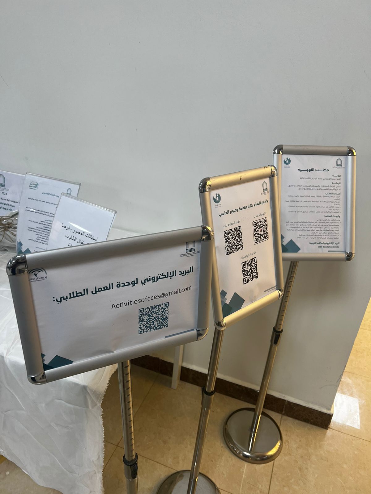 تحت رعاية سعادة وكيلة كلية هندسة وعلوم الحاسب د. الهام كريري نُظم برنامج تهيئة الطالبات المستجدات بالكلية للفصل الدراسي الأول عام 1445هـ وذلك بإشراف وتنظيم وحدة العمل الطلابي و وحدة التوجيه و الإرشاد الأكاديمي بكلية هندسة وعلوم الحاسب يوم الأحد الموافق 4/2/1445هـ في ساحة الكلية بوضع ركن تعريفي الطالبات المُستجدات بالكلية و المعامل و الأنشطة و الخدمات و تقديم ضيافة الاستقبال .